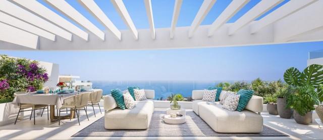 1 bed, 1 bath apartments from 420.000 euros 2 bed, 2 bath apartments from 620.000 euros 3 bed, 2 bath apartments from 900.000 euros 3 bed, 2 bath penthouses from 1.300.000 euros Prices excl. 10% VAT PHASE 1, 2 & 3 now sold out. Phase 4 last units off plan now selling. These cutting edge apartments span over a large site with plans to add in a wide array of amenities including sports and leisure, in addition to being only a short walk to the well-established town of La Cala de Mijas and the golden dunes its beach with many chiringuitos and ample space for families to relax and enjoy the Spanish tranquility. The town of La Cala de Mijas can provide all the necessities with ample doctors surgeries, dentists, banks and lawyers as well as supermarkets and a wide variety of boutique shops, restaurants and bars- Offering a variety of 1-4 bedroom apartments and penthouses, The Palms also boasts an expansive resort area with beach entry pools, a lap pool, indoor and outdoor gyms a kids play area and ample natural greenery in which families can spend their days exploring. The apartments benefit from high end fittings and fixtures, including open plan kitchens A-rated energy appliances as standard and have incredible views of both the mountains and the sea, from terraces due to their hilltop location. fMalaga Airport, Fuengirola, Torremolinos and Malaga city are in one direction with Marbella and Estepona only a short drive the other. Mijas has easy access to the very best of The Costa del Sol and beyond.