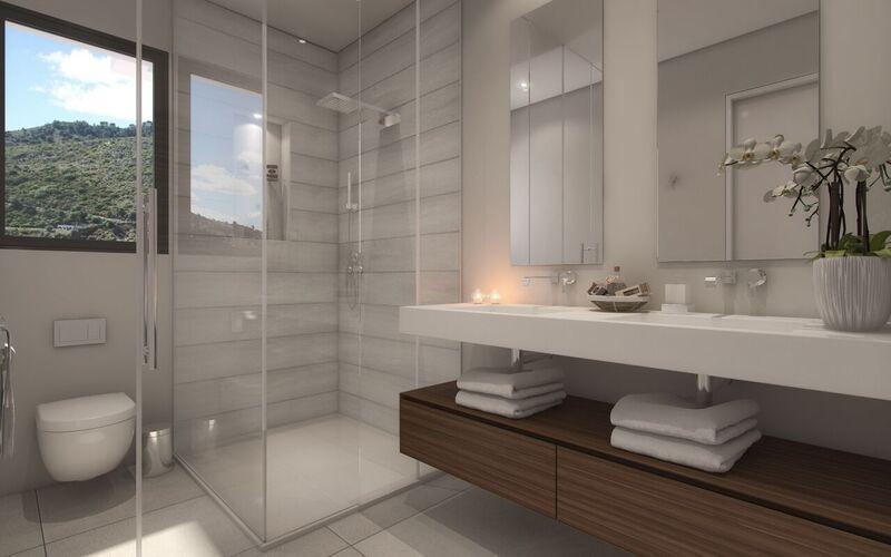 2 bed, 2 bath apartments from 799.000 euros (only 2 units left) 3 bed, 2 bath apartments SOLD! 3 bed, 2 bath duplex penthouses from 1.800.000 euros Prices excl. 10% VAT These contemporary apartments, penthouses and villas in 4 phases are nestling in the hills just behind Marbella, in the municipality of Ojén. The area is tranquil and surrounded by green belt and mountains with south facing impressive panoramic views down towards Marbella and the sea. They are only 5 minutes away from La Cañada, the well know commercial Centre in Marbella. The apartments are being built of the highest quality with state of the art modern architectural design and large interior spaces, lots of natural light blending with the natural surroundings and high specification fixtures and fittings. The development will include a health club with spa, gym, fitness studio and indoor pool as well as a business centre with wifi. The complex will house 2 outdoor pools (including one heated), 2 kids pools, strategically placed to enjoy the fantastic views, other services are 24 hour security, concierge service and onsite rental management. This apartment is large with total constructed area of 15,94 m2, of this 110,31 m2 interior space and 44,63 m2 of terrace. The property will comprise a spacious, light open plan living room / dining area with a beautiful kitchen including top end domestic appliances, leading out onto the south facing terrace with spectacular views of the sea and Marbella, 2 bedrooms with fitted wardrobes and 2 bathrooms. The property includes 1 parking space and a storage room. Benefit from special discounts on some units for pre-launch prices, these properties will be snapped up quickly! This luxury development in keeping with nature and surrounded by the mountainside is close to the village of Ojén, for a real Spanish flavour, a short drive to Juanar, a nature reserve with wonderful walks through pine forests and hiking trails leading up to the "Concha" mountain peak with spectacular views overlooking the Mediterranean coast, Marbella, Gibraltar and the coast of Africa. For the best of both worlds, it is only a short drive down to La Cañada, a well known shopping centre behind Marbella with all the shops you can imagine and Marbella town centre with it's amenities, shops, restaurants and bars and the beach. Málaga airport is around 40 minutes by car