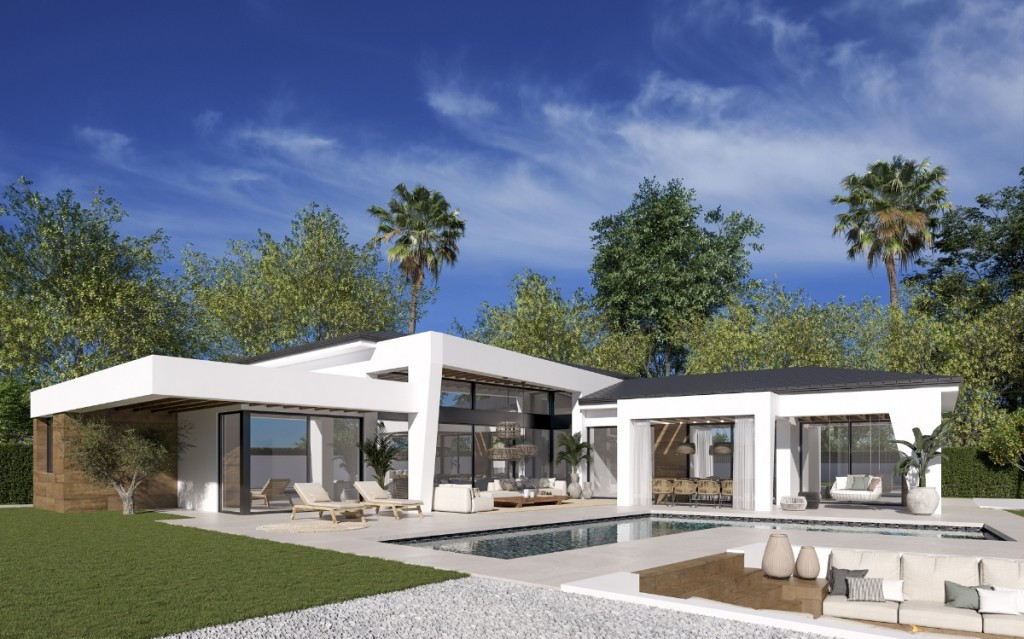 ONE LEVEL VILLA IN A NATURAL ENVIRONMENT ON A FANTASTIC LOCATION! New development combines luxury and nature in an exceptional environment. Three unique villas with 4 bedrooms are built on one level and designed to enjoy the Mediterranean lifestyle in a relaxed way. COMFOR The villas have been carefully studied, with a special architectural design where each house has been projected on one floor, and also has its own landscaping and ecological garden to enjoy the freshness of nature. These exceptional properties feature an open plan fully fitted kitchen with Neff appliances, air conditioning by air zone, underfloor heating throughout, domotic, large terraces, garden areas, pool and chill out area with winter fire. Additionally there is an underground garage and a large basement that can be customized to the taste and lifestyle of each family.