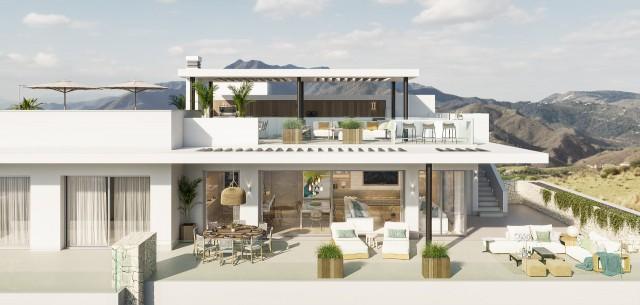 New Penthouse duplex for sale in East side of Marbella with Panoramic Views. Set in a bespoke development of 44 private sea view residences, immersed in authentic Andalusia, bordering a protected nature area and conceived by a world class team. Designed so that all properties benefit from dramatic views of the sea and beyond to Gibraltar and Africa. Bordering a protected nature area of 230 hectares, just 44 private residences are available within this gated community, providing two and three bedroom apartments, including 10 penthouses, each of which have their own private pool on the rooftop solarium terrace. To ensure that time in residence is as enjoyable and hassle free as possible, a comprehensive concierge service is available as well as full and highly personalised property and rental management services. For peace of mind, our elegant signature entrance to the complex is manned 24/7 with a security guard, video surveillance and a fully fenced perimeter. Below ground there is underground parking for every home and spacious private storage facilities.