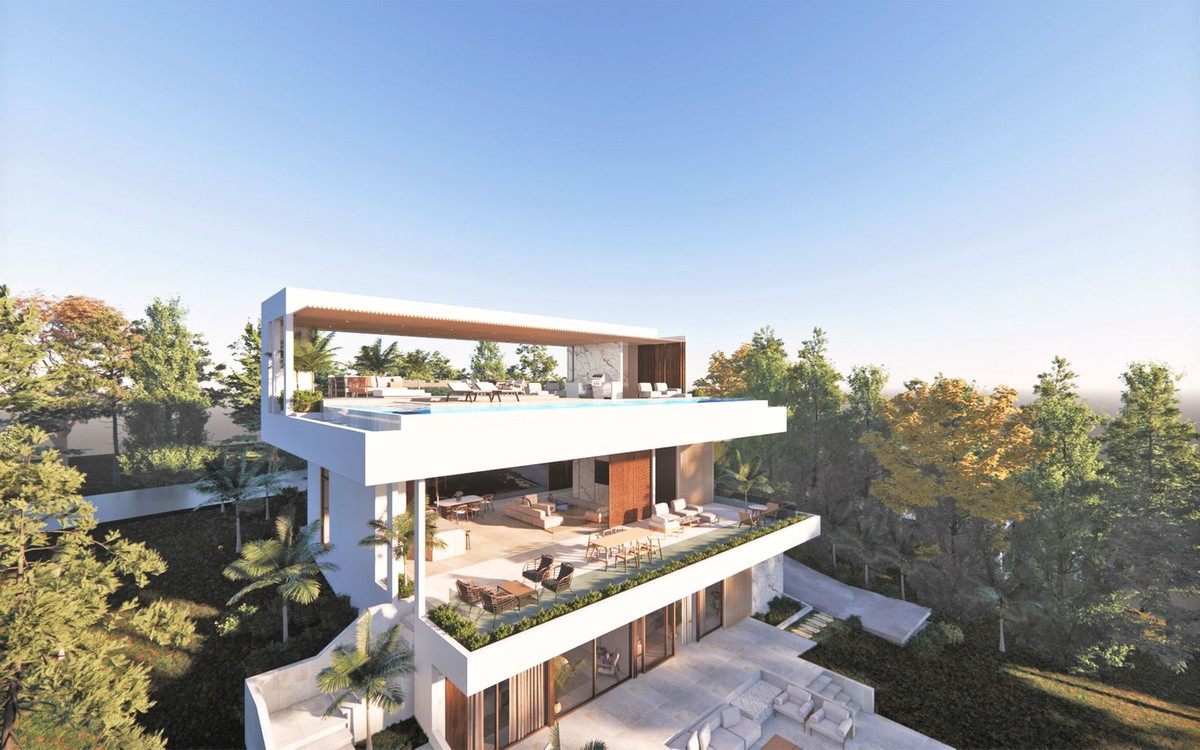 Luxurious Contemporary Villa | Campo Mijas We are very proud to introduce to you this unique 5* off plan villa, nestled within the heart of this well established urbanisation. This price is for the completed Key in Hand Villa Distributed over 3 floors with a unique roof-top infinity pool, the owners of this home will be able to enjoy a peaceful lifestyle surrounded by nature and be privileged to spectacular rooftop views spanning the coastline of Mijas Costa. The elegant villa design perfectly encapsulates the mediterranean lifestyle and creates a harmony with its natural surroundings. Open interiors merge seamlessly with ample terraces on each level providing plenty of relaxation areas. The house itself will be built to the highest of standards utilising an assortment of natural finishings. The new owners are able to personalise the internal distribution should they wish. They can work with the project manager to put their own stamp on what can only be described as a work of art. Current plans are for 4 bedrooms, 5 bathrooms (4 of which are ensuite), and a large 100m2 basement to be utilised to your desire, games room, gym, additional bedrooms, office space or all of above. Works can start almost immediately with the license that is in place and the build should take around 13 months, although the contract will be for 15 months to account for any unforeseen circumstances. Campo Mijas and its surrounding areas seem to be enjoying a massive uplift in value with the current boom in the Spanish property market. Decent real estate in the area doesn’t stay on the market for very long. A flexible payment schedule can be arranged between the new owners and the project manager. Bank guarantees and insurances are in place providing additional security for the buyer throughout the building process. Please don’t hesitate to get in touch for more information and viewings…….this opportunity will not be on the market for very long. From 4 en-suite bedrooms 405 m2 built including basement (156m2) 787 m² plot with infinity rooftop pool