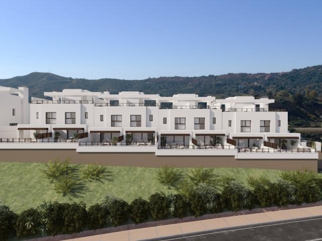 New 21 spacious townhouses for sale with panoramic views of the golf resort, the sea and Mijas valley. The homes are distributed over 3 levels in a private gated community with communal pool and gardens. The new townhouses are definitely the project for you, if you are looking for a comfortable, functional home with a private basement, a bright and airy main floor with a fully fitted and equipped kitchen, 3 spacious bedrooms, a large solarium measuring and a garden. Built in accordance with the new building regulations and with a grade A energy certificate. This is the ideal place to spend time on the Costa del Sol, whether it be as a holiday home, main residence or as an investment property. Delivery date: April 2025 Only a few units left, so hurry up if you fancy one...