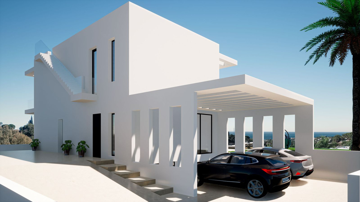 LUXURY CONTEMPORARY TAILOR-MADE VILLA IN MARBELLA WITH BUILDING LICENSE. Tailor made villa, can be customized to clients wishes, plot + project. Price from. This contemporary 2-level villa is designed considering optimized distribution of space, natural illumination, and ventilation in all rooms, and with the perfect exploitation of each square meter of the house, which means - no wasted space or energy! The entrance of the villa opens into a spacious entrance hall with wardrobes, leading to the spacious living room with open plan kitchen with an integrated kitchen island. Large floor-to-ceiling energy efficient windows give you direct access to the pool and the garden area. There is also a guest toilet on the ground floor. A magnificent living room area has been designed to fully enjoy and contemplate the beautiful views that Costa del Sol has to offer. Floating glass staircase leads you to the upper floor where you will find two large bedrooms with a shared bathroom and a lot of built-in wardrobe space. A master bedroom is equipped with an ensuite bathroom and a large walk-in wardrobe. You can access the roof terrace directly from the first floor through well designed staircase. The roof terrace has pre installation for solar panels. There are many flexible options for you as the buyer of this project. You can add a full basement with cinema room/ game room, laundry room, separate kitchen, wine cellar, sauna and possibility to make extra rooms as well. The villa is also designed so you can easily make a 4th bedroom on the ground level. The outside area offers spacious covered terraces, a beautiful private pool and a landscaped garden plus your own private parking space for two cars, connected to the villa.