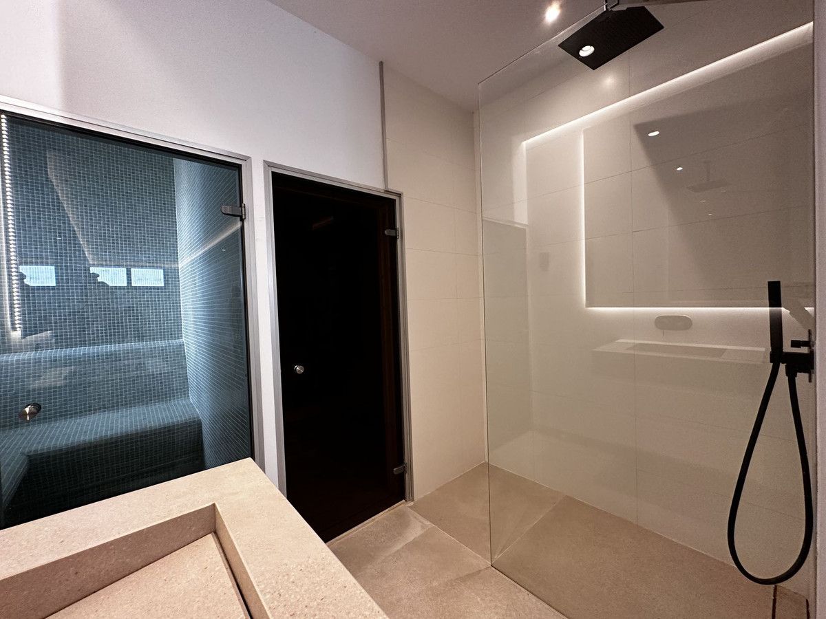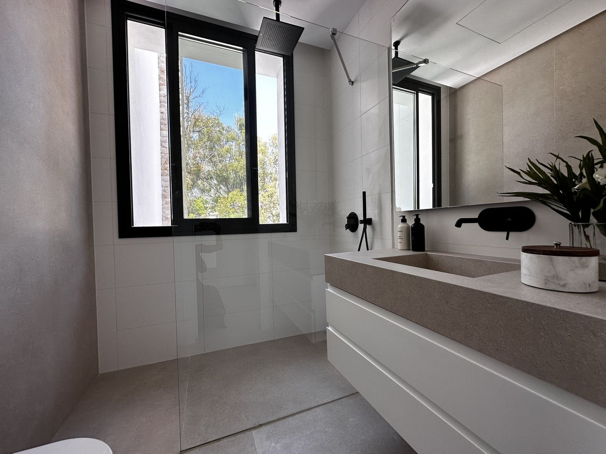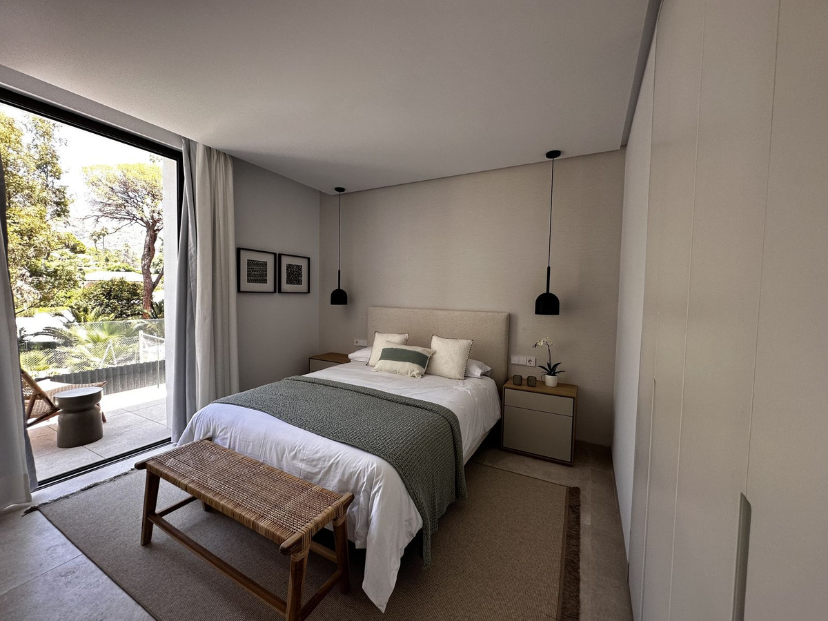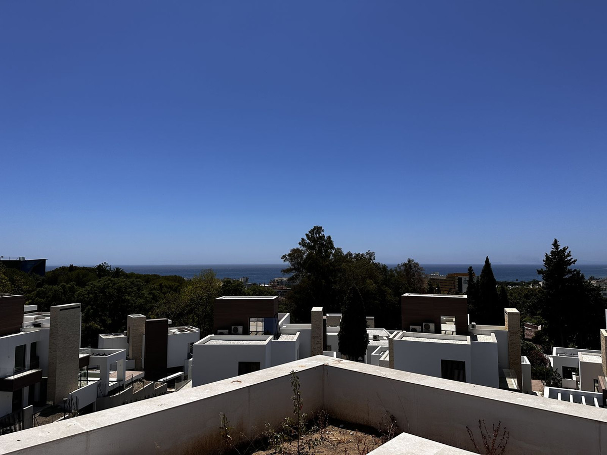 Modern luxury villa of exceptional qualities is located in a gated community, consisting of only 15 villas, with 24 hour security guards and concierge services situated in a green oasis on the edge of the famous Golden Mile and just a few metres from the beach, a few minutes walk from the historic old town. With a plot of 1000m2, a total living area of 730m2, large terrace of 225m2 and includes 5 bedrooms and 5 bathrooms, a spacious living room, an open plan kitchen equipped with the highest quality furniture and appliances, a private lift connecting each level of the property, cinema, sauna and hammam, under floor heating, a rooftop solarium with beautiful views towards the sea and private garage for 2 cars + 2 parking spaces. Both the garden and pool will be centrally maintained by the community for a carefree lifestyle. Construction of the villa is finished.