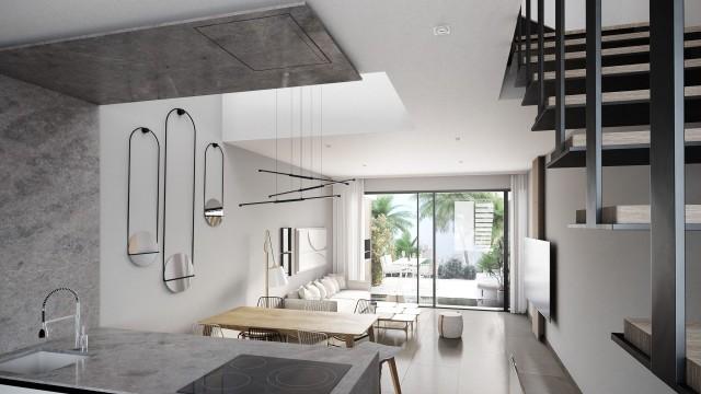 Fuengirola Azure offers greater delicacy in the completion of the details. It is essential for the client to have accurate information regarding materials and finishes to determine if the real estate product lives up to the expectations. An architecture studio specialized in contemporary design with extensive experience and understanding in luxury residential projects to guarantee the best result. Design and functionality, the perfect balance to achieve perfection Fuengirola Azure presents a residential complex of 11 homes characterized by its exclusive geographical location facing the sea. A residential complex with a contemporary architectural design, which has excellent qualities in a magnificent location with wonderful panoramic views of the Mediterranean Sea. Fuengirola Azure has only 11 semi-detached homes, with 3 bedrooms, 2 bathrooms and a toilet, distributed over two floors, as well as a basement and viewing lounge on the attic covered floor with access to a private solarium, large rooms, double-height living room, panoramic views in master bedroom, own terrace and complete equipment with a fitted kitchen, air conditioning, heating and exterior double glazing system, among others. A luxury residential area, made up of an elegant architectural volume projected in a contiguous alignment, which integrates landscaped recreational areas with a community pool, social room, gym and parking spaces.
