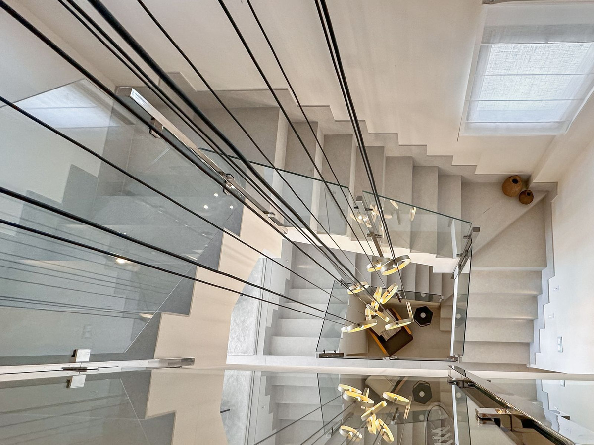 *** Spectacular Luxury Detached Villa on The New Golden Mile, Estepona *** Corner: Maximum Privacy *** 5 Bedrooms and 4 Bathrooms *** Spacious Terraces *** Private Garden with Jacuzzi and Swimming Pool *** BAsement with Windows and Bathroom *** Beachfront *** Access to the Promenade from the Garden *** South Facing *** Underground Parking Space *** Fully Fitted BULTHAUP Kitchen with GAGGENAU and SIEMENS *** Fully Furnished *** Private Lift * ** Hot and Cold A/C and Underfloor Heating Throughout *** Double Glazing *** Home Automation *** Boutique Gated Complex *** Luxury Facilities: Heated Pool, Gym, Jacuzzi, Children's Pool, Playground, Tennis and Paddle Courts, Gardens and BBQ Area *** Maximum Security 24 hours a day with Concierge and Video Surveillance Cameras *** Direct Access to the Beach *** Perfect Location *** Less than Ten Minutes by Car from Estepona and Puerto Banús *** Ready to Move In!!! *** This brand new luxurious detached villa is in an excellent location in the area of The New Golden Mile, Estepona. The exclusive house is facing the sea, and has direct access to the boardwalk through a private gate. It has easy access to Estepona and Puerto Banús, which are less than ten minutes away by car. The ground level consists of the bright entrance hall that leads south to the main living room with dining area for eight people, and study or home office area. The full-fitted BULTHAUP kitchen with GAGGENAU appliances is integrated into this area and has a breakfast bar. On this level there're two guest bedrooms, both doubles, with fitted wardrobes and lovely views of the garden. There is a fully-equipped bathroom serving this level. The interior and exterior spaces are joined by double-glazed windows that go from floor to ceiling, thus generating a feeling of continuity and connection with nature. The spacious terrace features the chill-out, barbecue area with outdoor kitchen and dining space. In the garden one can enjoy the heated jacuzzi and the swimming pool, surrounded by perfectly manicured lawns and the wooden platform for sunbathing. All this, in the much desired south orientation. There's a direct access gate to the beach. The upper level has the impressive master suite with spectacular panoramic views of the Mediterranean Sea, Africa and Gibraltar. It consists of its own private terrace facing the sea, ensuite bathroom and walk-in walk-in wardrobe. The guest suite is a good size and has a private terrace, walk-in wardrobe and ensuite bathroom. The basement level is divided into two separate spaces and offers multiple possibilities of becoming a cinema, games room, spa circuit or even a fully equipped studio, depending on the owners' needs. It receives natural light thanks to its windows, and has a guest bathroom. The specifications of this villa are high-end: air conditioning, underfloor heating, aerothermal energy, double glazing, home automation, LED lighting, glass railings, electric shutters, video intercom and private elevator to all levels. The boutique complex's facilities are luxurious: heated infinity swimming pool, outdoor gym, jacuzzi, children's pool, children's play area, barbecue and exotic gardens. In addition, the complex is gated and fully protected 24 hours a day with a concierge, video surveillance cameras and security control. The house comes fully furnished, as one can see in the pictures, by the high quality brands. Also, it has its private underground parking space, where there is a charger for electric cars. This is a perfect opportunity to acquire a luxury villa in an exclusive residential complex. The location is excellent, in a quiet and safe area while perfectly connected to beach clubs, world-renowned golf courses, international schools, luxury boutiques, supermarkets and all services. For more information, please contact us.