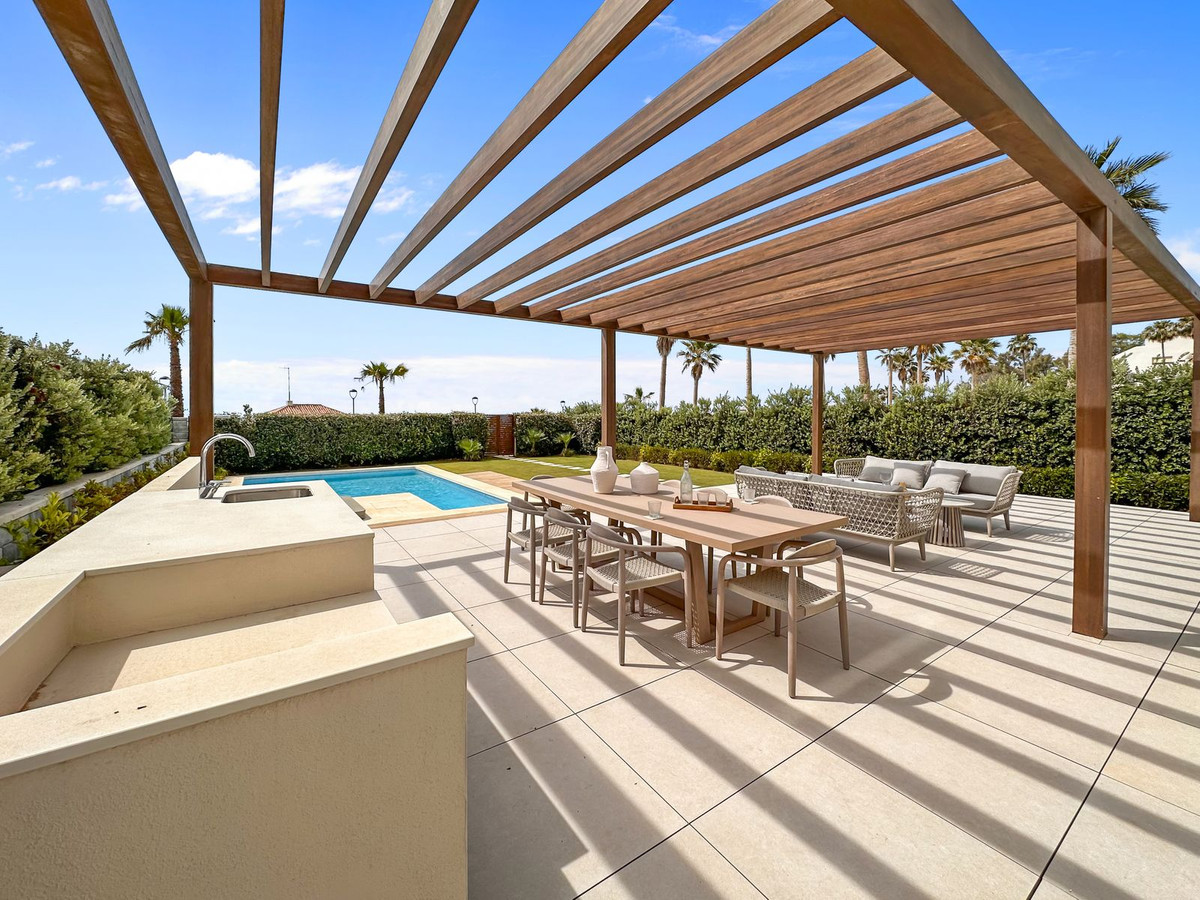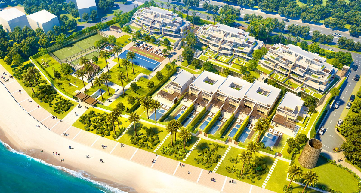 Setting: Beachfront, Beachside, Close To Golf, Close To Shops, Close To Sea, Close To Town, Close To Schools, Urbanisation, Front Line Beach Complex Orientation: South Condition: Excellent Pool: Communal, Private, Heated, Children`s Pool Climate Control: Air Conditioning, Hot A/C, Cold A/C, Central Heating, U/F Heating, U/F/H Bathrooms Views: Sea, Beach, Panoramic, Garden, Pool, Urban Features: Covered Terrace, Lift, Fitted Wardrobes, Near Transport, Private Terrace, Solarium, Satellite TV, WiFi, Gym, Games Room, Paddle Tennis, Storage Room, Utility Room, Ensuite Bathroom, Access for people with reduced mobility, Jacuzzi, Bar, Barbeque, Double Glazing, Domotics, Car Hire Facility, Near Mosque, Near Church, Basement, Fiber Optic Furniture: Fully Furnished, Not Furnished Kitchen: Fully Fitted Garden: Communal, Private, Landscaped, Easy Maintenance Security: Gated Complex, Electric Blinds, Entry Phone, Alarm System, 24 Hour Security, Safe Parking: Underground, Garage, Covered, Private Utilities: Electricity, Drinkable Water, Telephone, Gas Category: Beachfront, Holiday Homes, Investment, Luxury, Resale, Contemporary