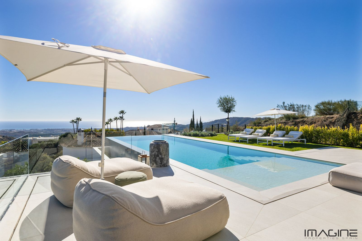 | Setting: Country, Close To Golf, Close To Town, Close To Forest, Urbanisation Orientation: East, South, West Condition: Excellent Pool: Private, Heated Climate Control: Air Conditioning, Hot A/C, Cold A/C, U/F Heating, U/F/H Bathrooms Views: Sea, Mountain, Country, Panoramic, Pool, Forest Features: Covered Terrace, Fitted Wardrobes, Private Terrace, Solarium, Satellite TV, WiFi, Guest Apartment, Storage Room, Utility Room, Double Glazing, Domotics, Fiber Optic Kitchen: Fully Fitted Garden: Private, Landscaped Security: Gated Complex, Entry Phone, Alarm System, 24 Hour Security, Safe Parking: Covered, More Than One, Private Utilities: Electricity, Drinkable Water, Photovoltaic solar panels Category: Golf, Luxury, Contemporary |
