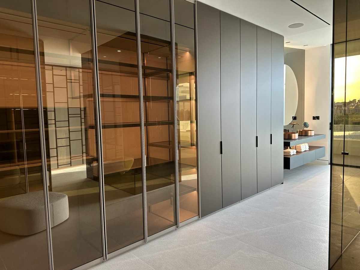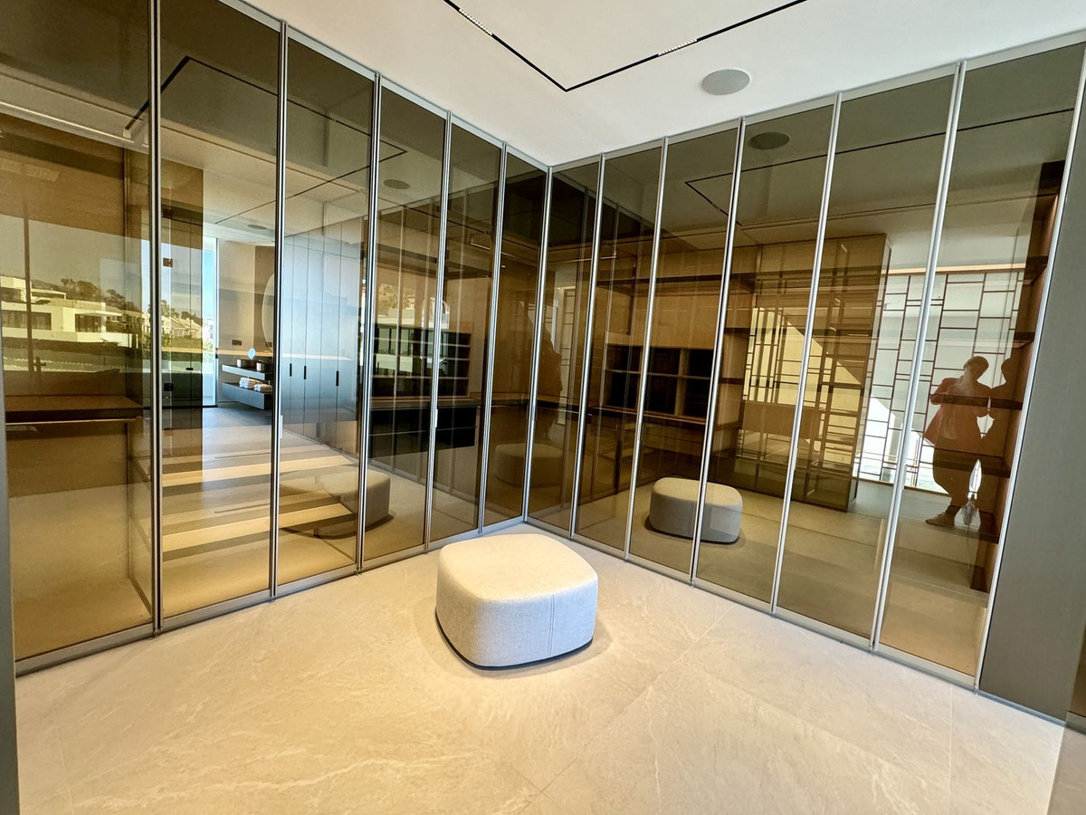 Brand new Villa located in a heart of Nueva Andalucia, Marbella. Walking distance to Puerto Banus and all amenities, close to Aloha Golf Club & Las Brisas Golf Club, and just 1,5 km from the beach. Houses were built in 2024. The residential is completely gated and private, counting with a spectacular entrance, which gives access to 6 impressive “Vilas” with state-of-the-art design. Within the entrance we can find the reception and the security guard post. The extensive outdoor spaces and gardens around the “Vilas”, give way to a new concept of swimming pool of almost 180 m2 plus a 36 m2 children’s pool, both with chlorination water treatment. The beautifully built Villa on 4 levels offers high quality, stylish and bright living room open to the large and elegant terrace. All 3 bedroom suites include floor-to-ceiling windows, a sleek minimalist kitchen. All 4 levels are connected by a modern elevator. Terraces leading out to a private area of garden – as well as having access to the beautifully landscaped communal gardens and swimming pool. Roof terrace with private swimming pool and outdoor cinema. A customizable basement provides ample space for a home gym, an additional bedroom or room for any other use, such as an office. Villa 6.2 has a parking space for 4 cars within the communal underground parking area. Due to its orientation and position, the entire complex enjoys natural light most of the day, and Villa is completely filled of luminosity through its incredible windows as well as through the “Central courtyard”. It is also a fact that the residents will be able to enjoy the most incredible sunrises and sunsets from the spacious terraces.