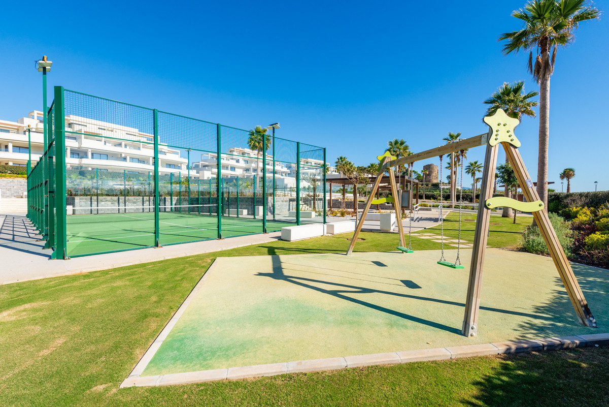 Wonderful, brand new and absolutely frontline apartment with spectacular, panoramic, frontline sea views. The property is available immediately, and is furnished to a very high specification. It has a spacious lounge with top-end kitchen with Gaggenau appliances and a large kitchen island. There are three bedrooms, including the principal bedroom suite which enjoys direct access to the private terrace, as well as an ensuite bathroom with separate bath and walk-in shower. There is also a small dressing area. Of the additional two bedrooms, one has an ensuite shower room, the other has access to a family bathroom. All rooms have electric blinds and the property has underfloor heating and air-conditioning throughout, as well as a laundry room. There are two underground parking spaces and a store room. The Velaya complex is newly completed and has many private facilities, including an outdoor heated swimming pool, padel tennis, full tennis court and a jacuzzi. There is also direct access to the beach and 24-hour security. The complex is located frontline to the beach with the paseo maritime running directly in front giving easy access by bicycle to Estepona town. The popular Velerin chiringuito is located a few steps away and the Kempinski is a few minutes' by car. Viewings recommended.
