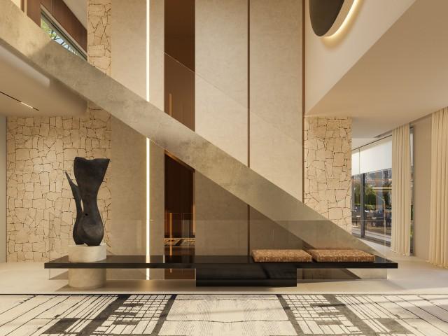 New Villa Gated Complex for sale in Marbella near Puerto Banus. Nestled within the illustrious enclave of Nueva Andalucia, this new gated development provides residents a luxurious escape that embodies the true essence of luxury living. With its privileged location in Nueva Andalucia, residents are granted convenient access to a plethora of nearby amenities, as well as sweeping views of the surrounding mountains and sea. The complex stands as a sanctuary of innovation and luxury, serving as a testament to the synergy of modern design and timeless elegance. Residents are granted an elevated lifestyle, with the finest elements of architecture, security and personalisation all combined. This visionary project redefines the concept of a modern urbanisation, offering an unparalleled lifestyle characterised by refinement, security and design ingenuity. Comprising a collection of 26 new build residences, the comple presents a harmonious blend of architectural brilliance and functional elegance. Designed by the visionary architect Ismael Mérida, the residences at this gated complex stand as modern marvels, each spanning three levels, including a solarium and basement, all united by a ground floor. Facing the cardinal directions of South, East, South East and West, the villas embrace the sun’s journey, casting enchanting hues and shadows throughout the day. What truly sets in this new developemnt apart is its innovative approach to vehicular circulation. Beneath the residences, an ingeniously designed avenue accommodates the flow of cars, as well as access to private carports and garages, discreetly hidden from sight. From an aerial perspective, what captures the eye is not a network of roads, but a network of pedestrian pathways and lush landscapes, with vehicles tucked away underneath connecting to garages and carports. This captivating feature not only enhances the aesthetic appeal but also fosters an atmosphere of serenity, giving rise to the aptly named. Immersed in the tranquility of a gated community with 24-hour security surveillance, this new villa complex ensures an environment of complete peace of mind. A security guard stationed at the entrance adds an additional layer of security and reassurance. A single entrance and exit point not only enhance security but also contribute to the sense of seclusion and privacy that defines this exclusive enclave. Residents can be confident that only they will have access to the community, and guests will be granted access upon approval. Diversity flourishes with three distinct typologies. The small and medium residences share a refined similarity, while the larger double-plot villas offer expansive living on a grand scale. Upgrade packages are available that will allow residents to tailor their villa to their precise desires. 23 of these homes boast a harmonious symmetry in size, providing a consistent and inviting atmosphere throughout the community. The 23 homes are divided into 2 typologies: Typology A designed by GC-Studio and Typology B designed by J. A. Flores. Adding an extra layer of distinction, 3 flagship Signature Villas stand as iconic landmarks of prestige, each exuding its own unique charm. These 3 villas are classified as Typology C, designed by Pedro Peña. All villas not only have their own bespoke amenities such as entertainment rooms, home cinemas and home gyms, but also have access to communal amenities such as an incredible gymnasium and state-of-the-art SPA with an indoor pool, hammam, sauna and ice bath. The Typology B villas, classified as medium-sized residences, showcase incredible interior design crafted by the renowned designer J. A. Flores. This category comprises four distinct subtypes: B1, B2, B3 and B4. Similar to Typology A, the primary differentiators among them are orientation, bedroom distribution per level and the option of a private carport or garage. Specifically, B1 and B3 subtypes provide residents with access to a private carport, while B2 and B4 subtypes grant access to a private garage.