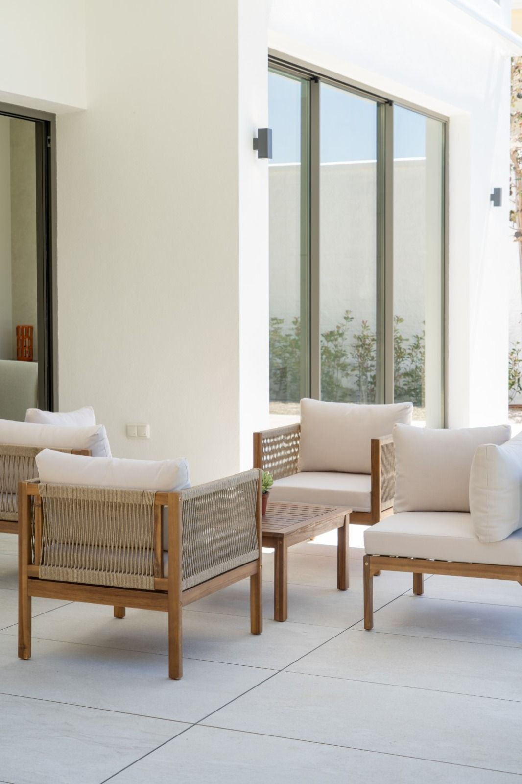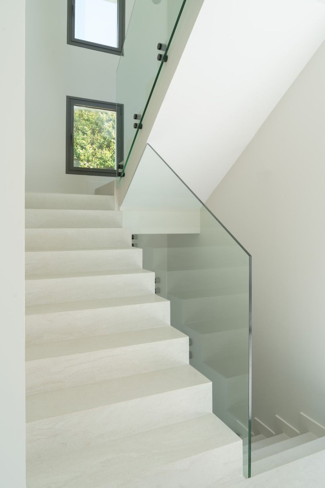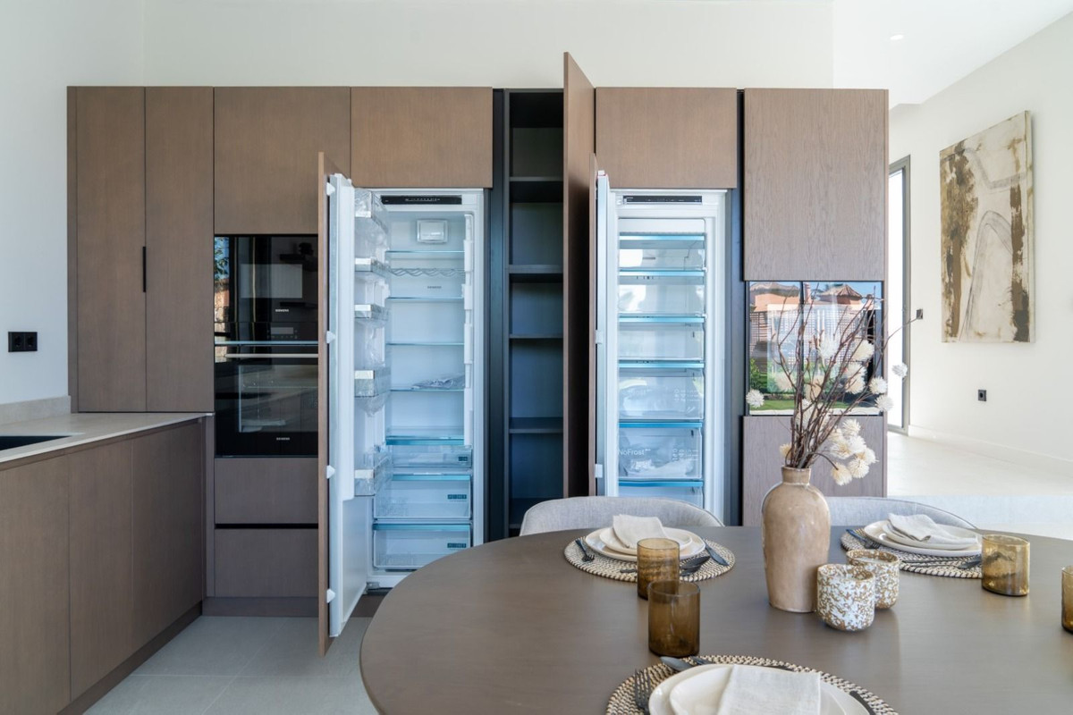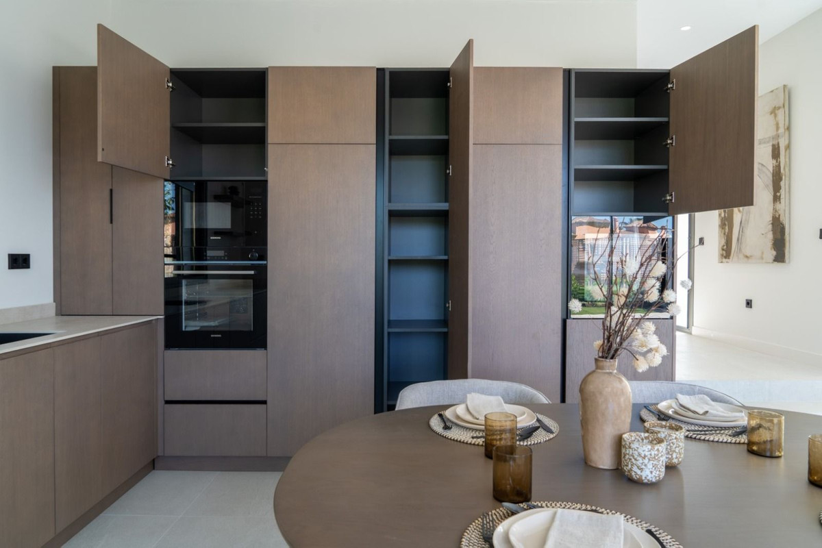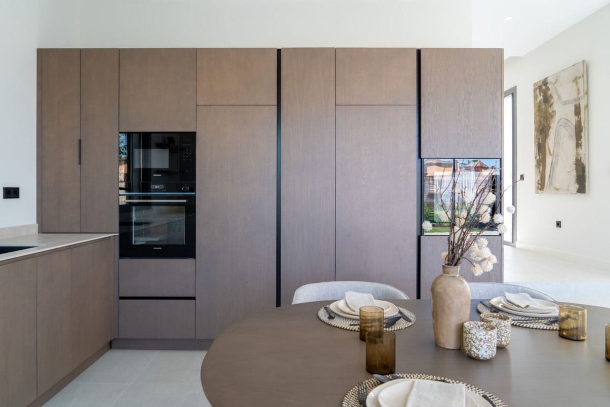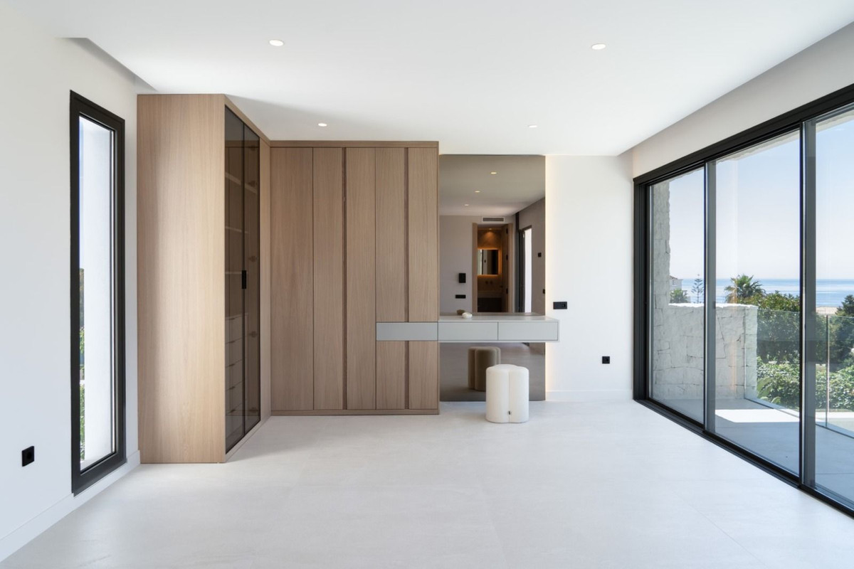 We present you a spectacular luxury villa in Estepona, ideal for those who value comfort, bright spaces and sustainability. This architectural gem WITH SPECTACULAR VIEWS OF GIBRALTAR; is distributed around a double-height main volume and extends over three levels: ground floor, upper floor and basement. This home offers a sophisticated and functional design that will make you fall in love from the first moment. On the ground floor, you will find a welcoming entrance hall, cloakroom, en-suite bedrooms with bathroom and dressing room, a dream kitchen-dining room, a spacious living room and a main porch that opens onto a magnificent outdoor skimmer pool with pre-installation for a heat pump. The upper floor houses the master bedroom with the option of converting the second bedroom into a library and a terrace to enjoy the views. The basement is presented raw, except for the machine room, offering a blank canvas to personalize to your liking. The villa has an outdoor parking area, a porch and solarium area, as well as a garden with programmed automatic irrigation and programmed lighting. Equipped with TV/FM antenna, digital video intercom, air renewal system and air conditioning installation in the basement, every detail has been carefully thought out for your comfort.