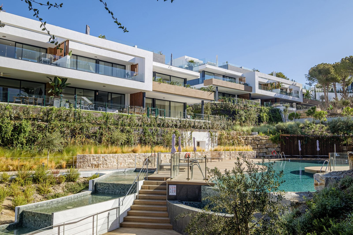 Setting: Close To Golf, Close To Port, Close To Shops, Close To Sea, Close To Town, Close To Schools, Close To Marina, Urbanisation Orientation: South Condition: Excellent, New Construction Pool: Communal, Private Climate Control: Air Conditioning, Hot A/C, Cold A/C, U/F Heating Views: Sea, Mountain Features: Lift, Fitted Wardrobes, Private Terrace, Solarium, Gym, Sauna, Storage Room, Ensuite Bathroom, Jacuzzi, Double Glazing, Domotics Furniture: Optional Kitchen: Fully Fitted Garden: Communal Security: Gated Complex, Entry Phone, Alarm System Parking: Underground, More Than One, EV charge point Category: Luxury, Contemporary