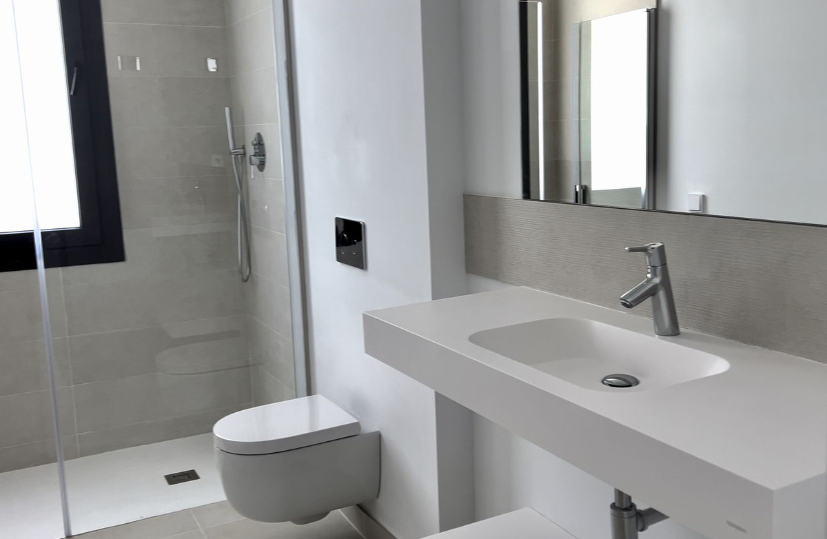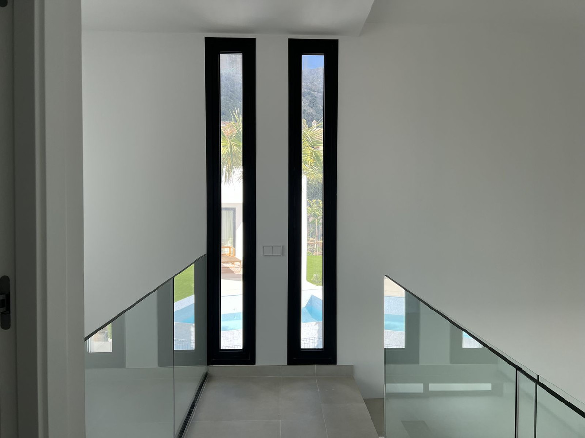 Brand-new luxury villa in El Higuerón, Fuengirola Location & Amenities: Brand new villa with panoramic views of the Mediterranean, mountains and Fuengirola coastline Situated in the prestigious El Higuerón area Access to top-class amenities: gym, spa, wellness areas, fine dining, Beach Club, and concierge services Family-friendly with playgrounds and lush gardens Direct shuttle to the beach Nearby 5★ Hilton hotel with tennis, padel, sky bar, pool, and restaurant Málaga Airport: 17 min Beach: 7 min Property Details: Bedrooms: 4 Bathrooms: 3 + guest toilet Built area: 294 m² Terraces/verandas: 102.89 m² Plot size: 652 m² Orientation: South-facing Views: Panoramic sea, mountain, and Fuengirola views Swimming pool: 3 m x 10 m Landscaped garden with irrigation system, palm trees, olive tree, flowers and bushes Relaxation area with open fireplace Parking space for 2 cars Layout: Ground floor: Entrance hall with stairs to upper floor Guest toilet Open-plan living room, kitchen, and dining area with direct access to garden and pool One bedroom with en-suite bathroom Upper floor: Three bedrooms and two bathrooms Master bedroom with en-suite and access to a large terrace One additional bedroom also with terrace access Laundry room with washer and dryer.