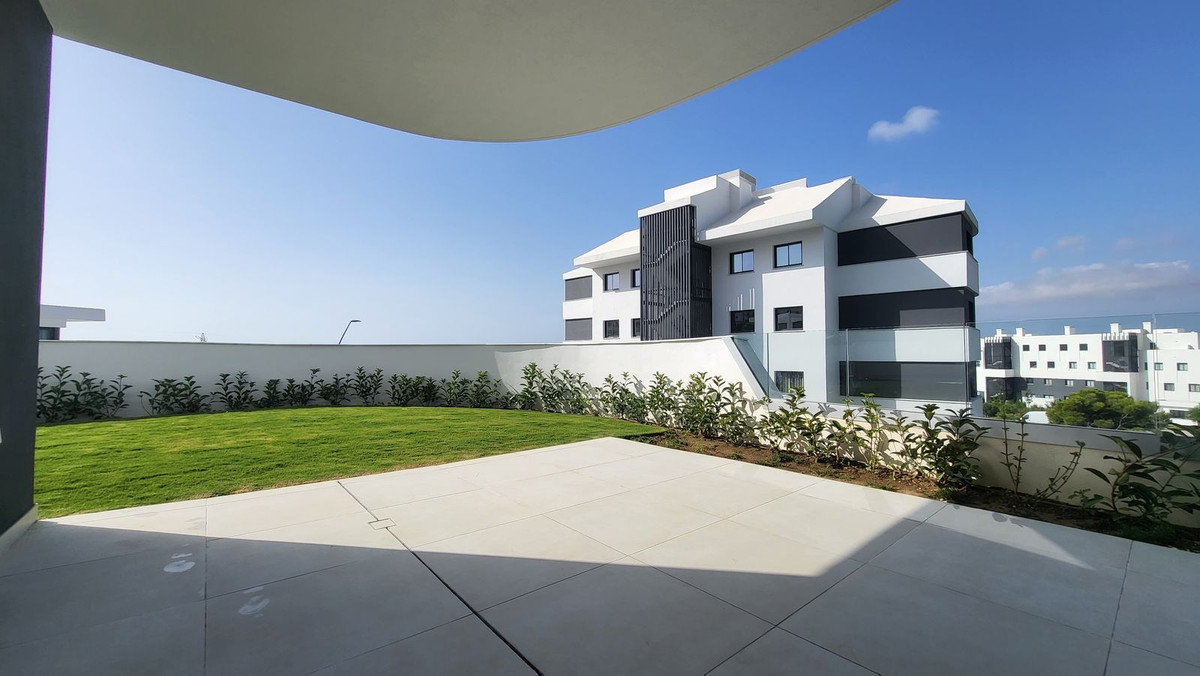 This brand new luxurious corner garden apartment is situated in the prestigious Higuerón West urbanization and features two bedrooms, two bathrooms, a generous living-dining area, and an open-plan kitchen that is fully furnished and equipped with electrical appliances. It also includes a laundry area with a washer/dryer. The living space boasts floor-to-ceiling sliding doors that open to a vast wrap around terrace of 35m2 offering urban, pool and partial sea views. Additionally, there is 68m2 of private garden and an outdoor shower. Spacious master bedroom with an en-suite bathroom and terrace of 18m2, perfect for enjoying the morning sunshine. The apartment is equipped with both hot and cold air conditioning, a video intercom, a home automation system, built-in wardrobes in the bedrooms, a pre-installed alarm system, and underfloor heating in the bathrooms. It also includes two parking spaces and one storage room.