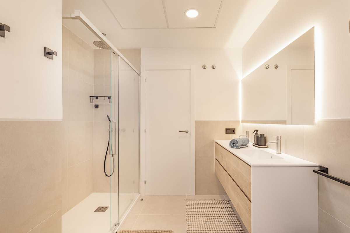 Setting: Close To Golf, Close To Shops, Close To Sea, Close To Town, Urbanisation Orientation: South Condition: Excellent, New Construction Pool: Communal Climate Control: Air Conditioning, Pre Installed A/C, Hot A/C, Cold A/C Views: Panoramic, Garden Features: Lift, Fitted Wardrobes, Private Terrace, Solarium, WiFi, Storage Room, Utility Room, Ensuite Bathroom, Access for people with reduced mobility, Double Glazing, Fiber Optic Furniture: Part Furnished Kitchen: Fully Fitted Garden: Communal, Landscaped, Easy Maintenance Security: Gated Complex, Electric Blinds, Entry Phone, Alarm System Parking: Underground, Garage, Street, Private, EV charge point Utilities: Electricity, Drinkable Water, Photovoltaic solar panels, Solar water heating Category: Golf, Holiday Homes, Investment, Luxury, Reduced, Resale, Contemporary