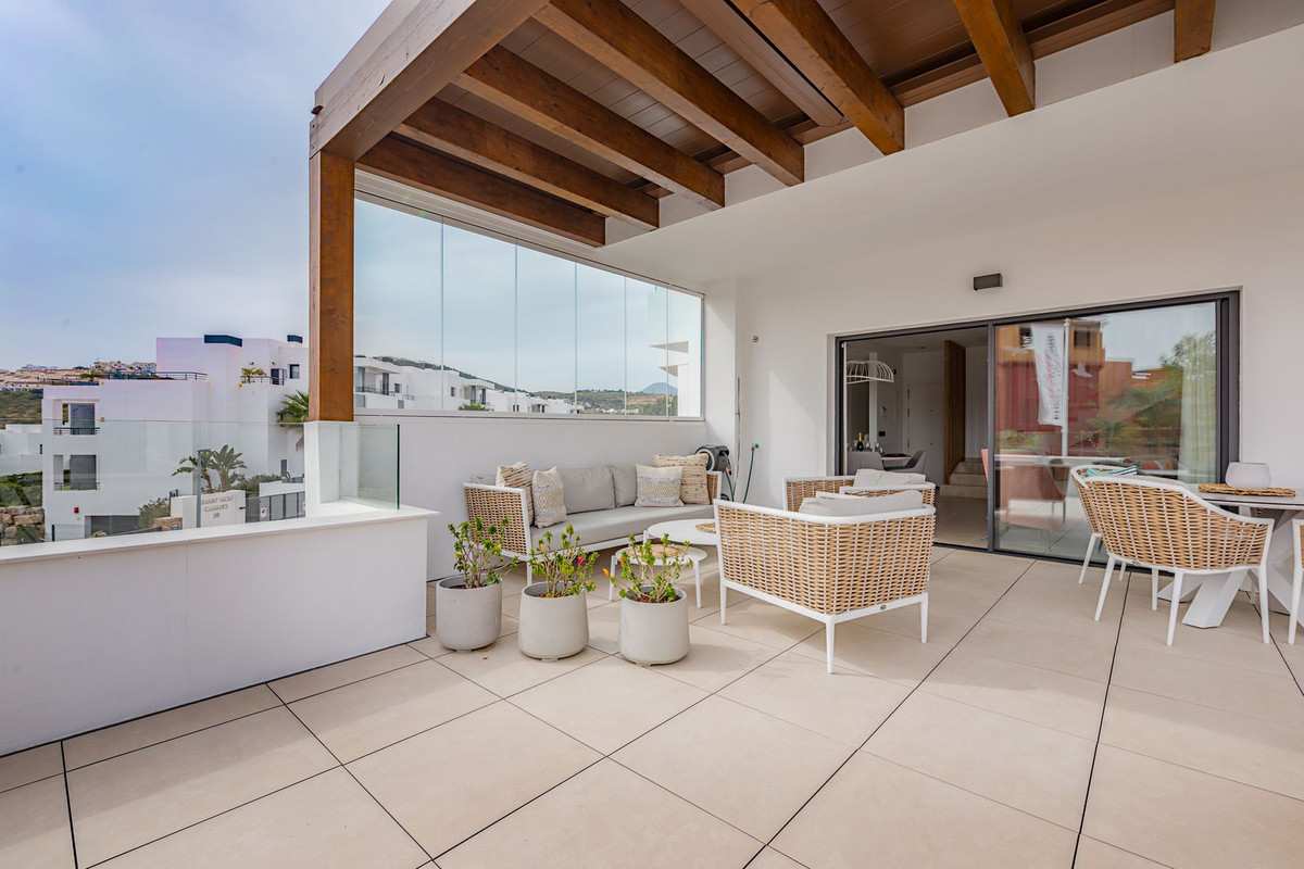 Exclusivity!!! Luxurious and Spacious 2-Bedroom Duplex Apartment for Sale in Casares Costa! Discover your dream home in this stunning 2-bedroom duplex apartment, ideally located adjacent to the prestigious Finca Cortesin Golf Resort. This brand-new, modern residence boasts a bright and airy interior, featuring large windows that flood the living spaces with natural light. Enjoy generous south-facing terraces designed for relaxation and outdoor entertaining. The open-plan living area is perfect for contemporary living, showcasing a stylish Sensia kitchen equipped with modern furnishings, along with a convenient laundry area for added practicality. Both spacious bedrooms come with large en-suite bathrooms, ensuring comfort and privacy for you and your guests. Additionally, a private back patio offers extra space for outdoor enjoyment. The communal areas are designed for leisure and relaxation, featuring a large swimming pool surrounded by beautifully landscaped gardens that require minimal maintenance. This gated community provides 24-hour security for your peace of mind. Included in the price is an underground parking space equipped with an EV charging station, as well as a storage room. The apartment is easily accessible from the garage, making it suitable for individuals with reduced mobility. For golf enthusiasts, this location is a paradise, with a variety of top-notch courses nearby, including Finca Cortesín Golf Club, Casares Golf, Doña Julia, Azata Golf, and Estepona Golf. Situated in the picturesque area of Casares Costa, this apartment is just 1.5 km from the beach and offers convenient access to local amenities. Within a short 15-minute drive, you can reach the charming towns of Estepona and Sotogrande. Motivated seller!! Easy viewings, keys in office.