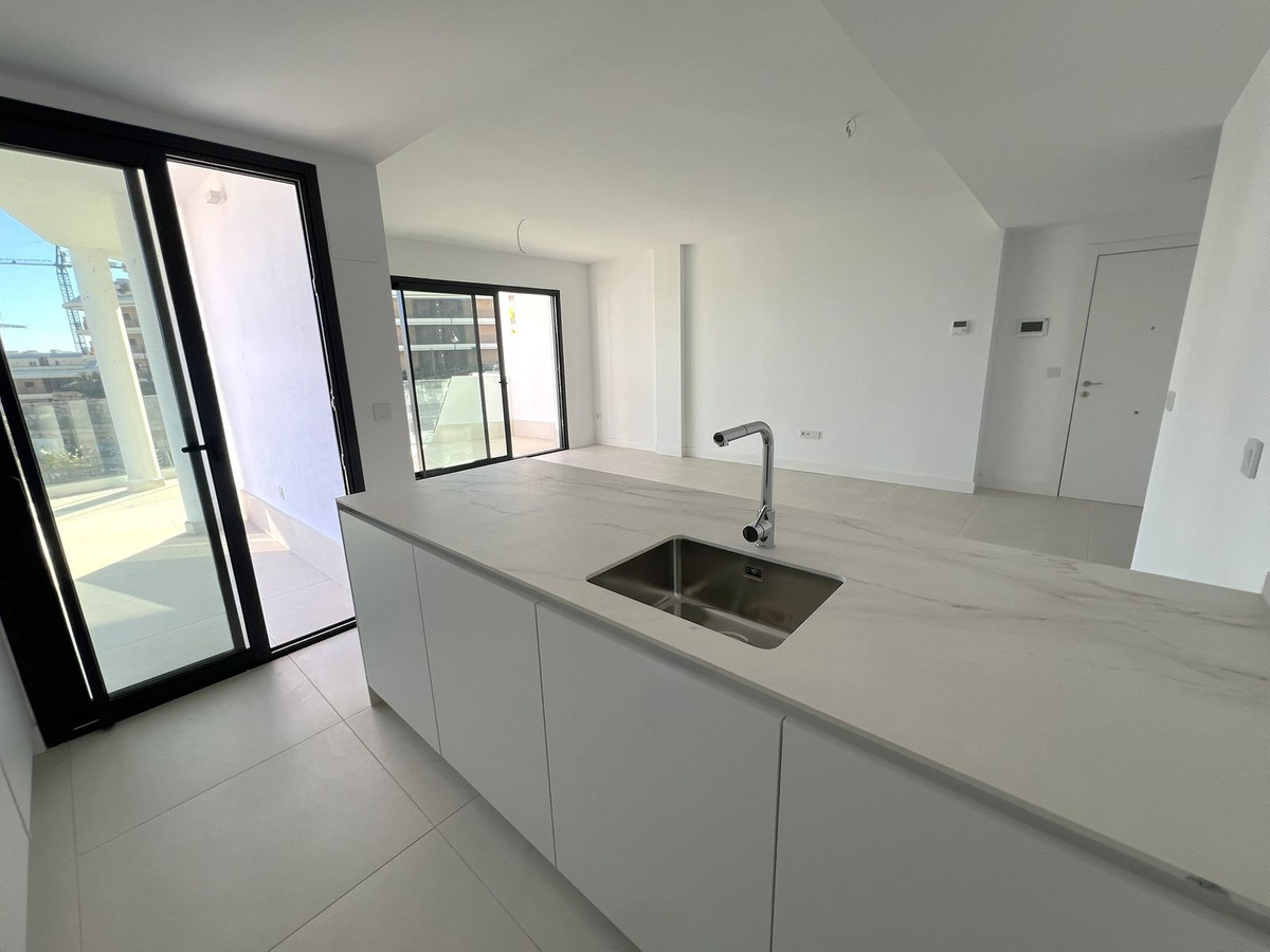 Setting: Urbanisation Orientation: South Condition: New Construction Climate Control: Pre Installed A/C Views: Sea, Panoramic, Garden, Urban, Street Features: Lift, Fitted Wardrobes, Private Terrace, Storage Room Furniture: Not Furnished Kitchen: Fully Fitted Garden: Communal Parking: Underground, Garage, Private