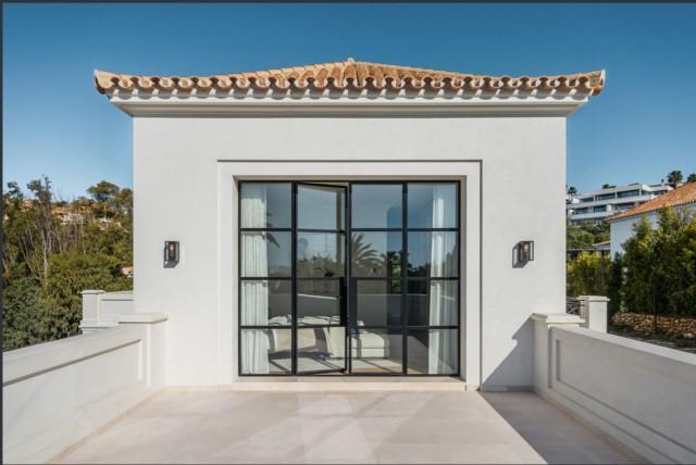 An exceptional villa for sale within La Cerquilla, an esteemed neighborhood in Nueva Andalucía’s renowned Golf Valley. Completed in 2023, this newly constructed villa represents a harmonious blend of modern design and classical influences inspired by French provincial architecture. Its expansive 475 square meters of built area, along with a refined 78 square meter terrace, offer ample space for relaxation and alfresco dining. The villa features four luxurious bedrooms, each equipped with an en-suite bathroom for enhanced privacy and comfort, catering to the needs of family members and guests. A thoughtfully placed guest toilet serves the common areas, adding convenience during social gatherings. With a layout that skillfully balances grandeur and intimacy, Villa Valora creates a warm and inviting atmosphere throughout its impressive living spaces. Villa, Close to Golf, Views: Garden, Mountains, Pool Features: 5-10 minutes to Golf Course, Aerothermal, Air Conditioning Hot/Cold, Alarm System, Automatic Entrance, Barbecue, Basement, Completely Equipped Kitchen, Contemporary style, Conveniently Situated for Golf, Covered Terrace, En suite bathroom, Excellent Condition, Fireplace, Fitted Wardrobes, Games Room, Garden, Garden and Pool View, Guest Wardrobe, Gym, Home Cinema, Laundry room, Luxury Fittings, Modern Style, Mountain View, Newly Built, Private pool, Private Terrace, Salt water pool, Sauna, Solarium, Underfloor Heating, Wood Flooring