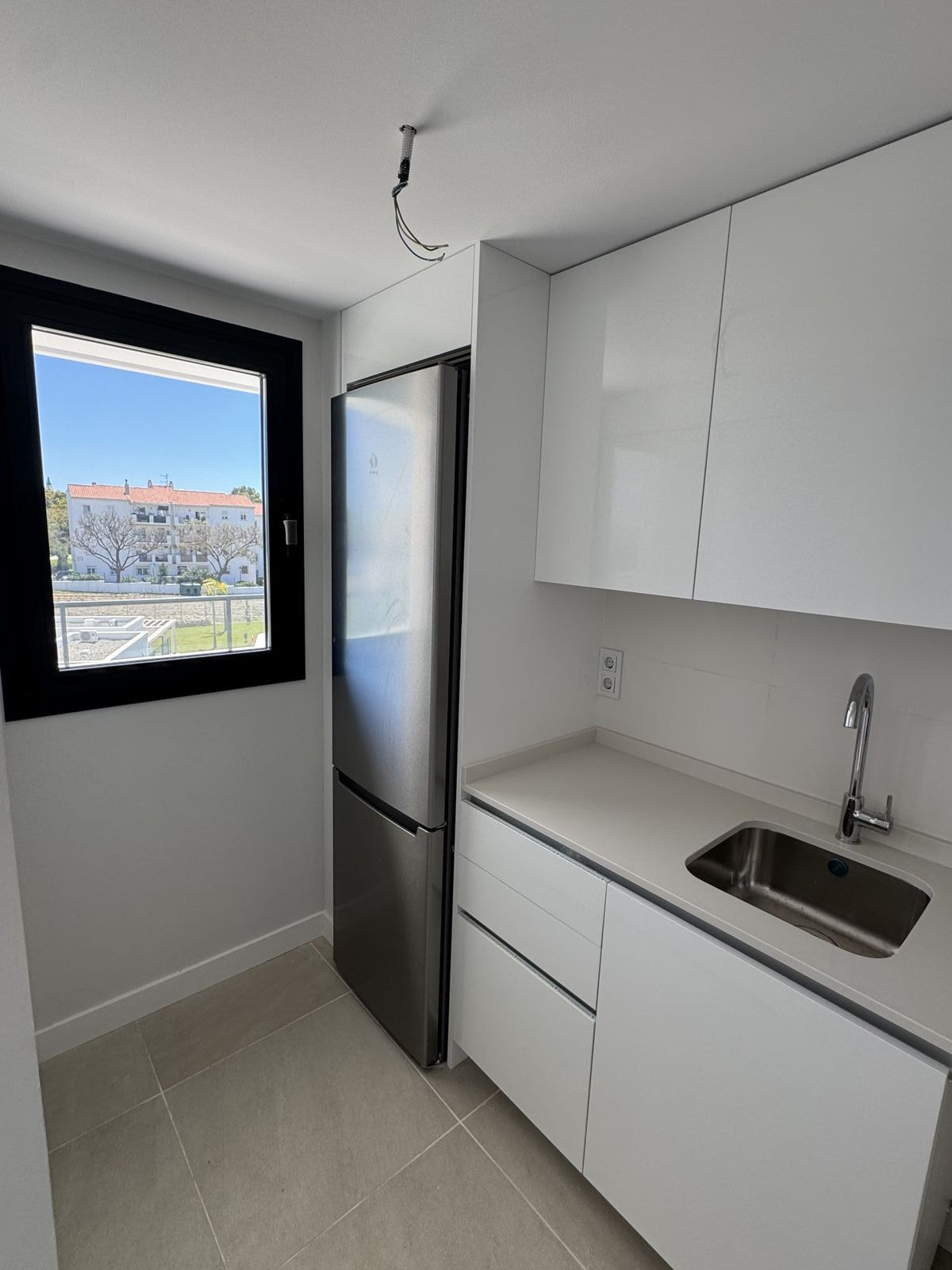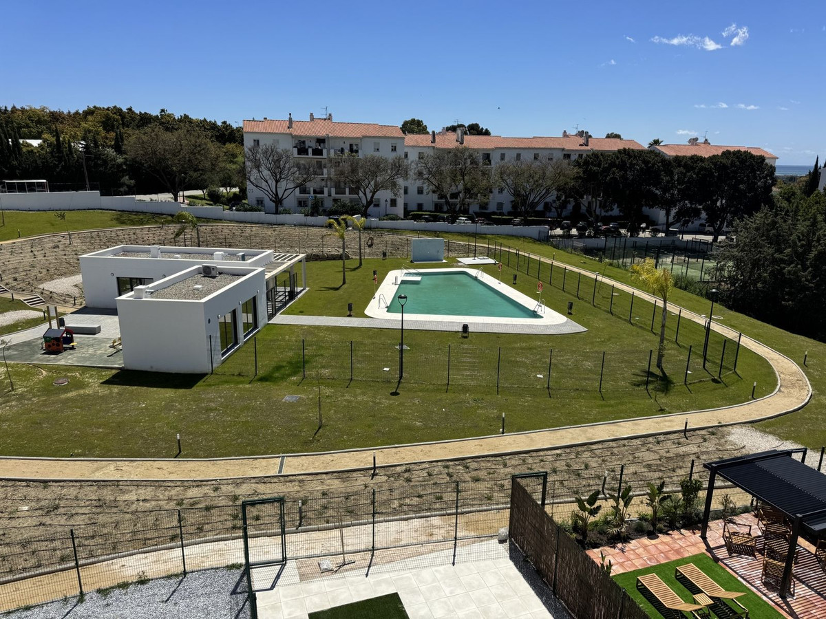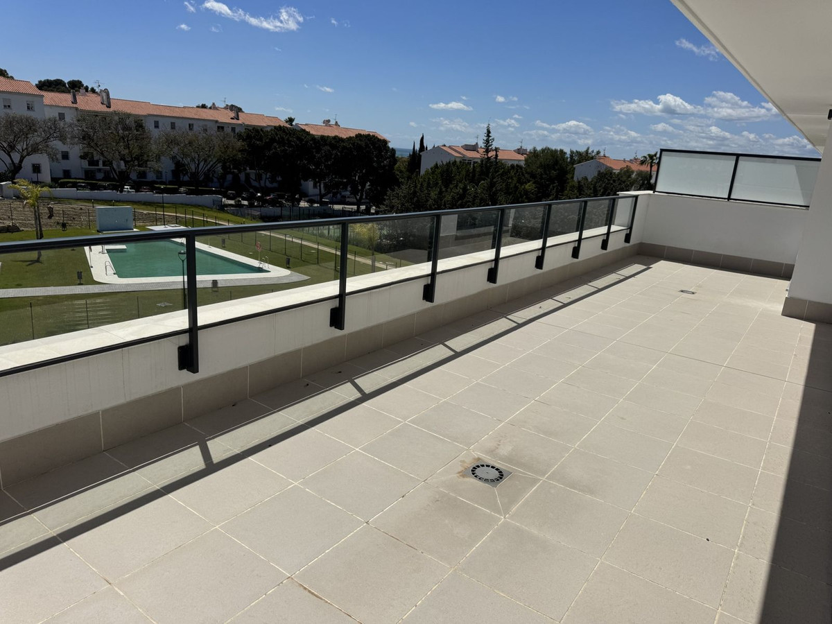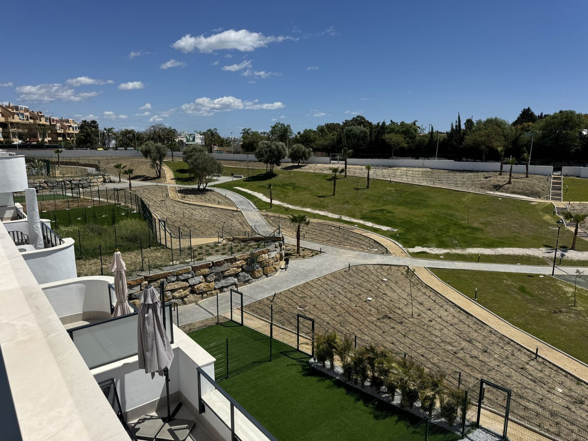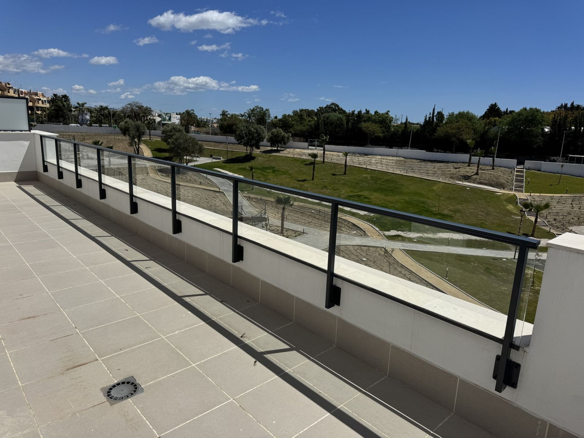 Just completed 3 bedroom new build penthouse. New residential complex with modern flats and penthouses close to golf in Estepona, located in a gated community, adjacent to La Resina Golf Club and a 5-minute drive to the beach. The penthouse has a modern design and offers top-quality materials and finishes. The open-plan living room with a fully equipped kitchen looks out onto a large terrace overlooking the garden and pool. The penthouse comes with a parking space and a storage room, included in the price. The communal areas are beautifully landscaped and offer expansive green areas and a large swimming pool. There is also a co-working space, a fully equipped gym and a children's playground.