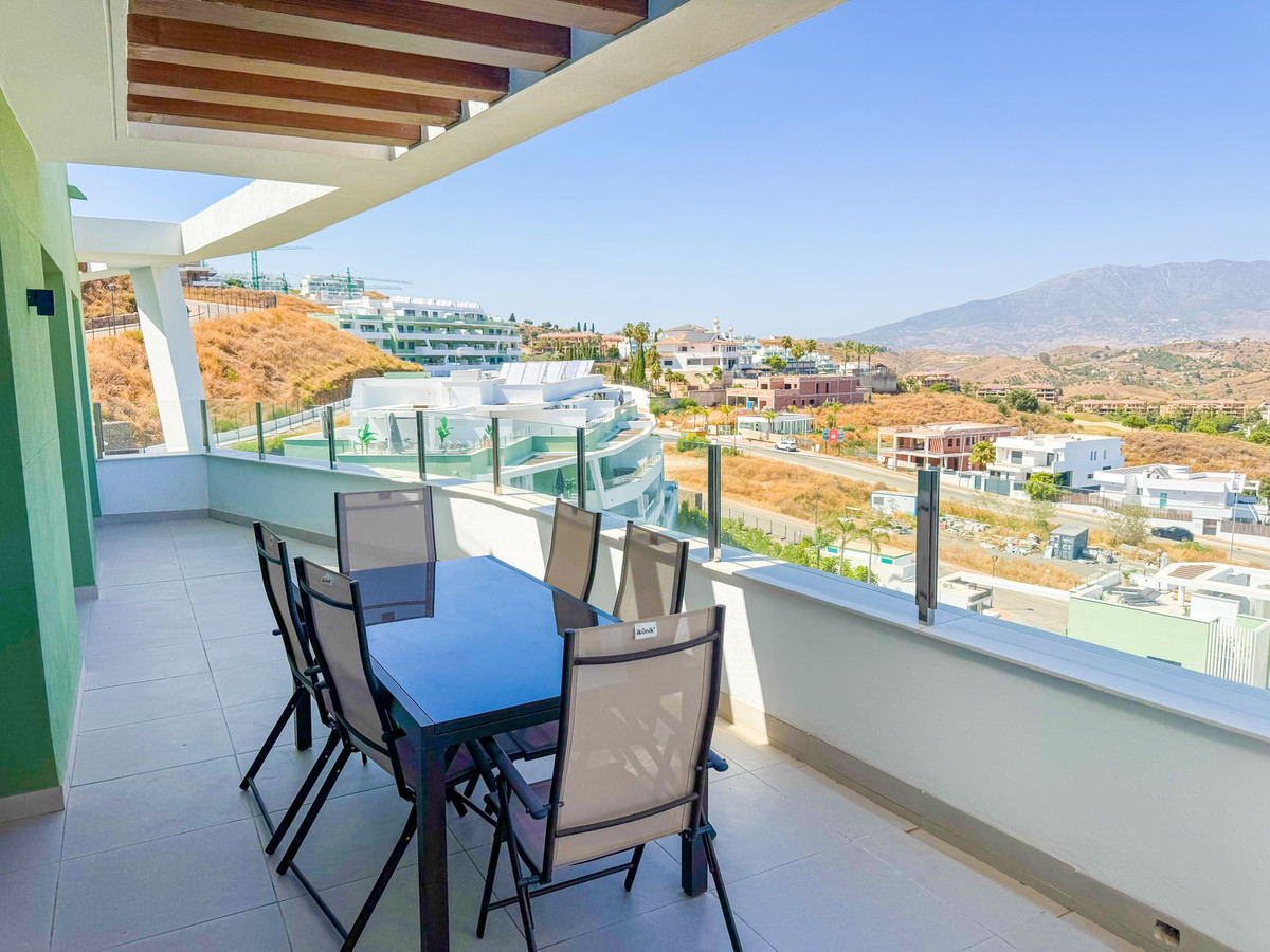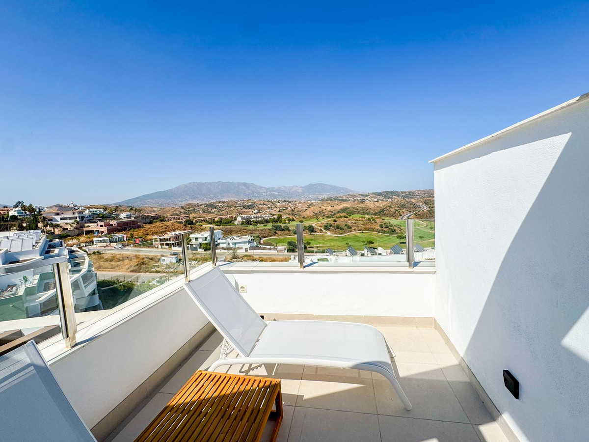 Spectacular Duplex Penthouse in the Ipanema urbanization of La Cala de Mijas. One of the highest apartments of the complex with panoramic views all over the coast, mountains and Calanova Golf. Only 5 minutes drive to the beach and 10min drive to Marbella, this apartment is the perfect holiday home or investment becuase Airbnb rentals are allowed in the community which counts with many facilities. Living in Ipanema is a lifestyle in itself. The unique architecture that defines the project continues in each of the homes. A display of good taste and beautiful scenery, Ipanema offers a collection of community spaces designed with intimate and elegant landscaping. The complex features two outdoor pools, one with a beach finish, as well as a lagoon within a beautiful garden area. Vegetation plays a key role in creating an environment in which Ipanema's architectural design can flourish. Ipanema's themed paths lead through beautiful green areas to facilities such as the fully equipped professional gym and a private spa with a heated indoor pool, sauna, steam room, and men's and women's locker rooms. The perfect combination of home-like comfort and privacy, along with the services of a high-quality resort.