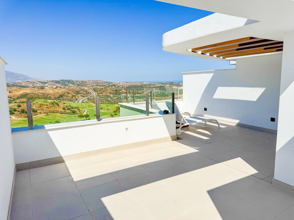 Setting: Close To Golf Orientation: South East Condition: Excellent Pool: Communal, Indoor, Heated Climate Control: Air Conditioning, Hot A/C Views: Sea, Mountain, Golf, Panoramic, Pool Features: Covered Terrace, Lift, Fitted Wardrobes, Private Terrace, Solarium, WiFi, Gym, Sauna, Ensuite Bathroom, Barbeque, Double Glazing, Fiber Optic Furniture: Not Furnished Kitchen: Fully Fitted Garden: Communal Security: Gated Complex, Electric Blinds, Entry Phone, Alarm System Parking: Covered, Communal Utilities: Electricity, Drinkable Water, Telephone Category: Golf, Holiday Homes, Contemporary