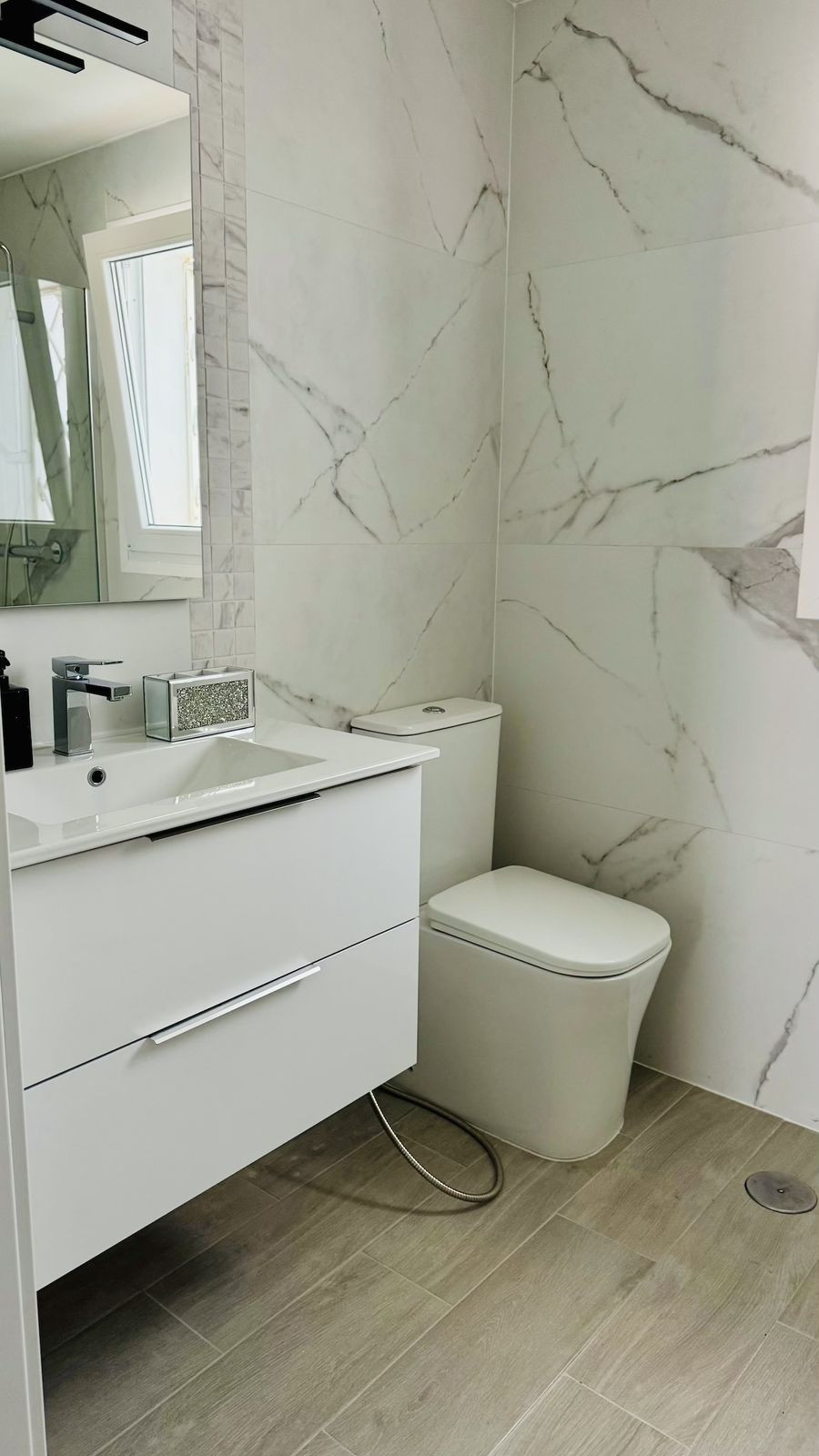 3-Bedroom Penthouse in Bel-Air, Estepona – Totally Refurbished! Please note: located on the second floor, and the building has no lift. This beautifully renovated penthouse is located in the peaceful and well-established area of Bel-Air, between Estepona and San Pedro. The property has been completely refurbished with brand-new electrical and plumbing systems, modern bathrooms, a stylish open-plan kitchen, and high-quality furnishings and appliances. It’s ready to move in without any additional work. The apartment features three spacious bedrooms, two contemporary bathrooms, a bright living room connected to the kitchen, and a generous terrace offering panoramic mountain views and partial sea views. The terrace is perfect for outdoor dining, sunbathing, or enjoying a morning coffee in the sun. Situated on the second floor of a quiet residential complex (no lift), the property benefits from access to several communal swimming pools and landscaped green areas. There is outdoor parking just next to the building. The beach is around 20–25 minutes on foot or just 5 minutes by car. Within walking distance, you’ll find supermarkets, pharmacies, restaurants, international schools, bus stops, and sports facilities. Bel-Air is known for its relaxed atmosphere and convenient location close to both Estepona and Marbella. This penthouse is a perfect option for permanent living, a holiday home, or a rental investment. Thanks to the fresh renovation, spacious layout, and attractive views, this is a truly valuable opportunity on the Costa del Sol real estate market.