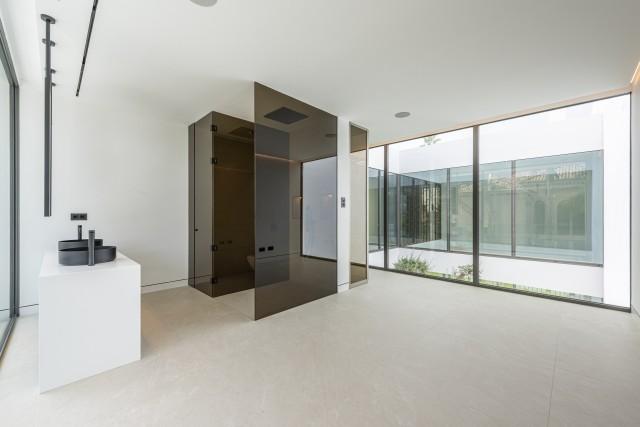 Contemporary Semi-Detached Villa with Panoramic Views in Nueva Andalucía Nestled in the heart of Nueva Andalucía, one of Marbella’s most prestigious residential enclaves, this newly constructed semi-detached villa presents an exceptional opportunity to own a stylish and spacious home in a secure gated community. Surrounded by beautifully maintained communal gardens and just minutes from world-class golf courses, international schools, golden beaches, and the famed Puerto Banús marina, the location is second to none. Newly Built with Exceptional Design and Space Completed in December 2023, this south-facing villa boasts 612 m² of total built area, including 372 m² of elegant interior space and an impressive 240 m² of private terraces across four levels, seamlessly connected by an internal staircase. With a private plot of 91 m², the home has been designed to maximise natural light and flow, thanks to floor-to-ceiling windows and expansive sliding glass doors. Main Living Spaces The ground floor offers a bright and open-plan layout with a generous living and dining area, leading directly to a large sun-drenched terrace — perfect for entertaining or relaxing. The state-of-the-art kitchen features minimalist design and is fully fitted with top-of-the-range Gaggenau appliances, offering a clean and functional space for modern living. Bedrooms and Bathrooms The property comprises four bedrooms and five bathrooms, including three luxurious en-suite bathrooms and a guest WC. Three bedrooms are located on the upper floor, all designed for privacy and comfort. The fourth bedroom is on the lower level, ideal for guests, staff, or use as a home office or gym. Bathrooms are finished in elegant Porcelanosa marble, while the home features warm oak wood flooring and a calming neutral palette throughout. Spectacular Rooftop with Plunge Pool and Outdoor Cinema A standout feature of this property is the private rooftop solarium, complete with a heated plunge pool and a fully equipped outdoor cinema — an exceptional space to enjoy panoramic views of the Mediterranean Sea, La Concha Mountain, and Puerto Banús, or to host unforgettable gatherings under the stars. Additional Features and Amenities Three large underground parking spaces with direct access to the property Access to communal swimming pool and landscaped gardens High-quality materials and finishes throughout Air conditioning, underfloor heating, and home automation features Located in a peaceful gated community yet close to all key amenities A Lifestyle Investment in One of Marbella’s Finest Locations This property offers the perfect combination of privacy, design, and convenience. Whether as a permanent residence, a stylish holiday retreat, or a high-yield rental investment, this villa delivers exceptional value and appeal in one of Marbella’s most sought-after postcodes. Key Highlights: Newly built semi-detached villa in gated community South-facing with panoramic sea, mountain, and marina views Four bedrooms, five bathrooms including three en-suites Open-plan layout with Gaggenau kitchen and oak flooring Rooftop solarium with plunge pool and outdoor cinema Three underground garage spaces with private access Communal gardens and swimming pool Early viewing is highly recommended to appreciate the design, lifestyle, and value this property offers.
