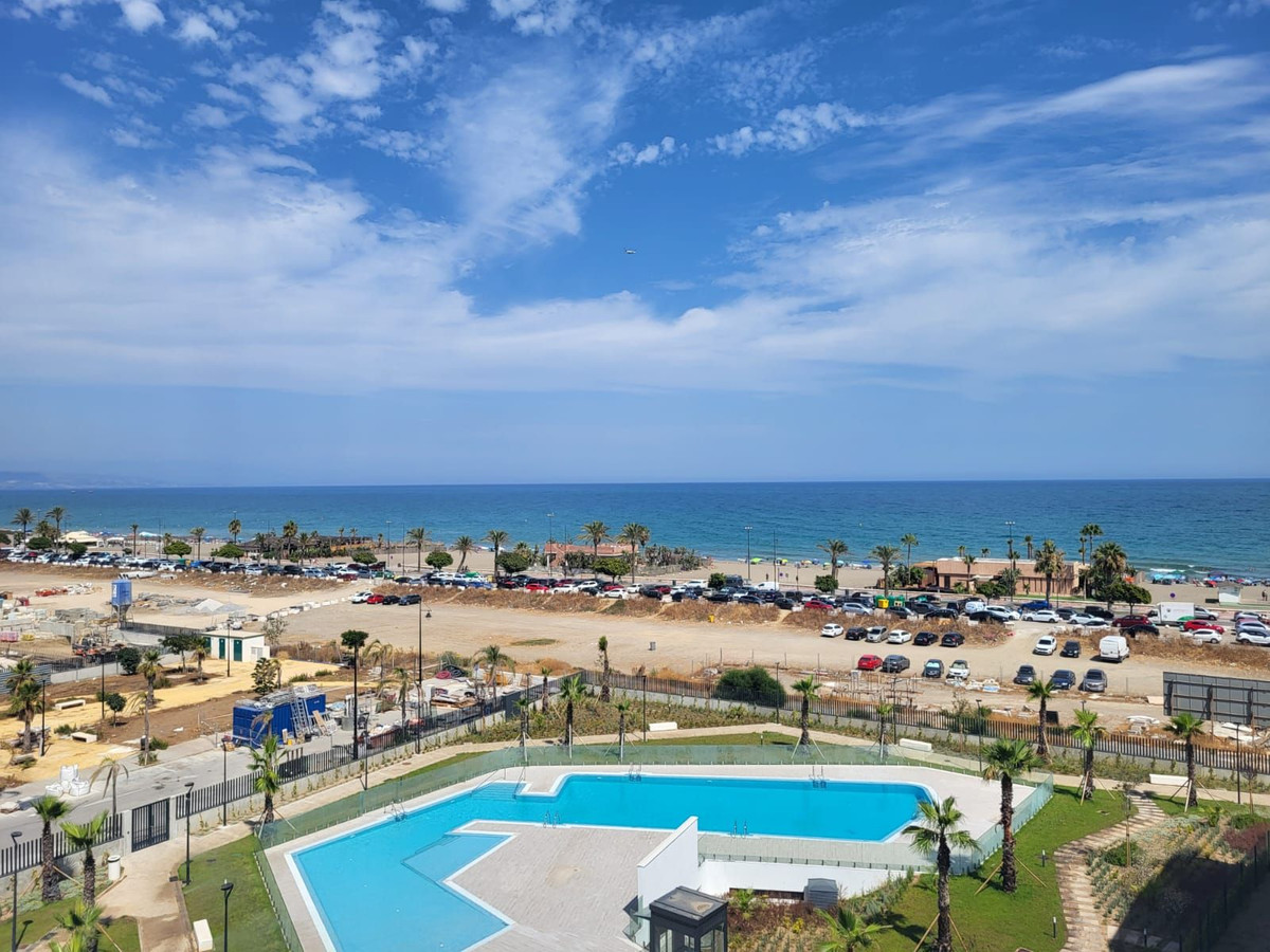 Setting: Beachfront, Beachside, Close To Sea, Urbanisation, Front Line Beach Complex Orientation: South Condition: Excellent, New Construction Pool: Communal Climate Control: Air Conditioning Views: Sea, Beach, Port, Panoramic, Garden, Pool Features: Lift, Fitted Wardrobes, Near Transport, Private Terrace, Double Glazing, Fiber Optic Furniture: Not Furnished Kitchen: Fully Fitted Garden: Communal Security: Gated Complex, Entry Phone Parking: Underground, More Than One Category: Contemporary