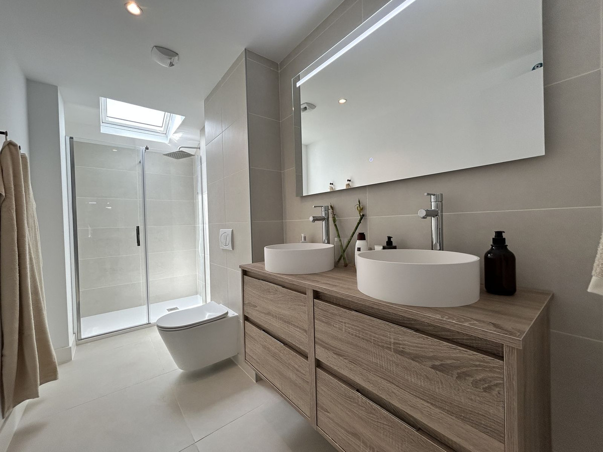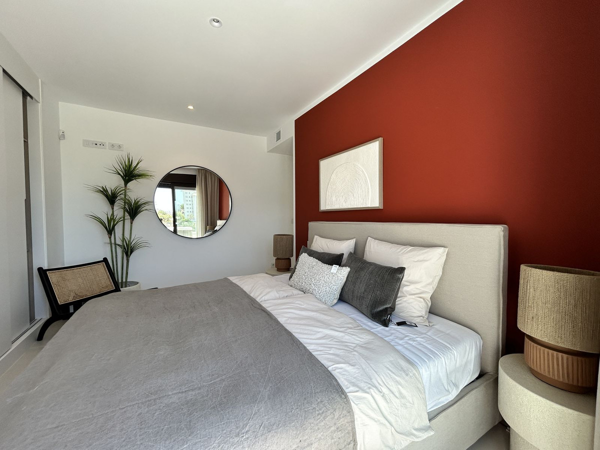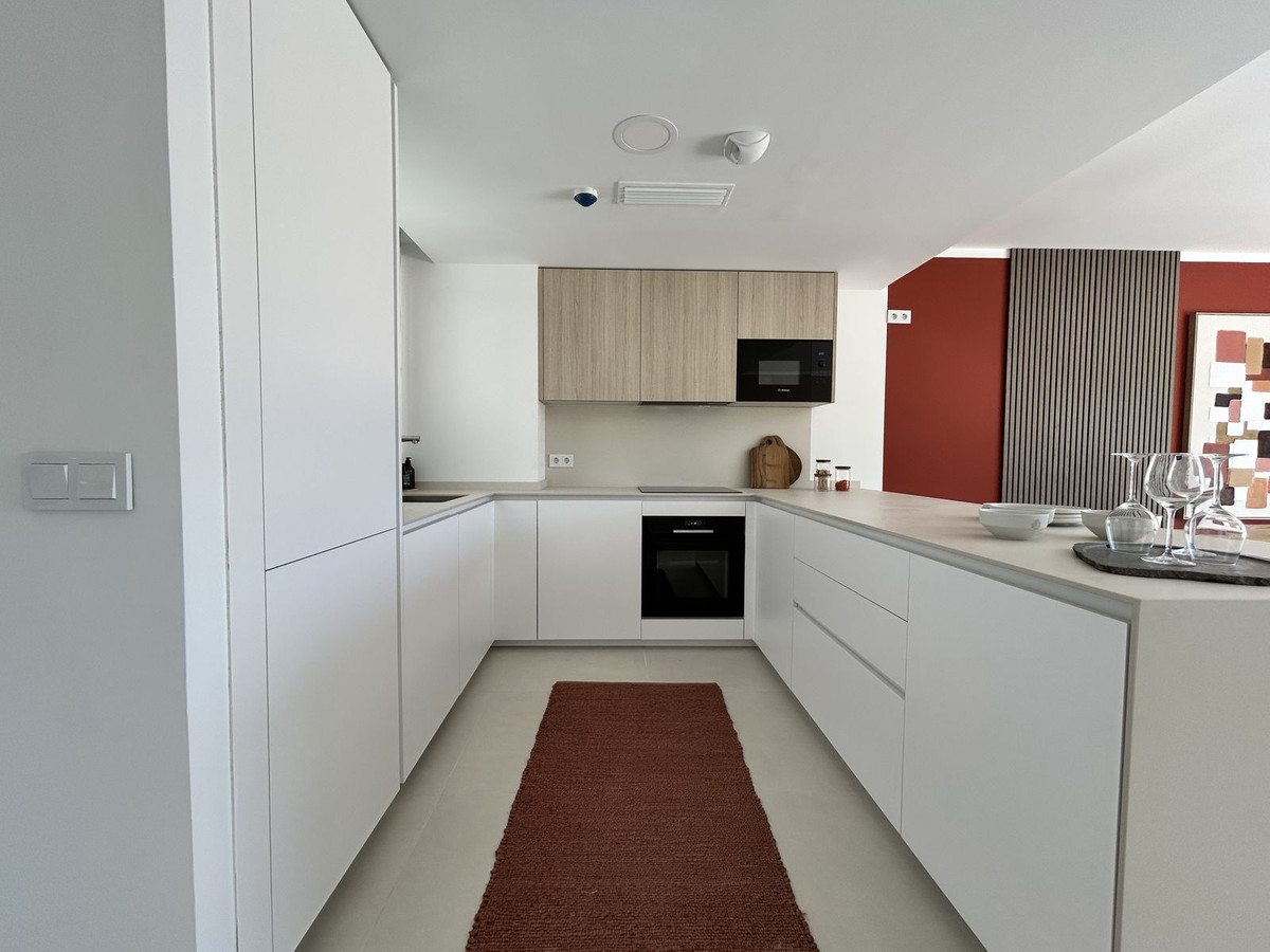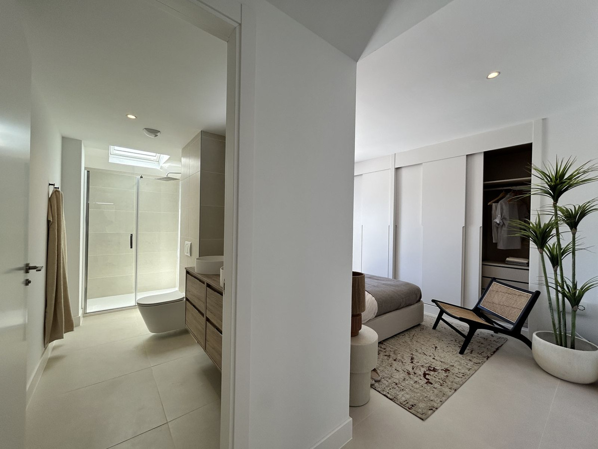 Exclusive 3-bedroom penthouse with a sea-to-sky horizon and southwest orientation that ensures sun, views, and privacy throughout the day. Located in a leading residential in the Higuerón area, with more than 100,000 m² of gardens, several outdoor pools, a solarium, a jacuzzi, and a children's area; a growing Mediterranean oasis, well-connected and surrounded by nature. The home comes fully furnished with high-quality designer furniture, with a comprehensive design and interior design project by "Ikonia Ilusion&Arte": selected pieces, carefully curated lighting, and a contemporary palette that enhances the spaciousness of the space. The living room and kitchen are integrated and open onto the large terrace through high-performance sliding doors, maximizing the natural light and outdoor living. Comfort and efficiency: air-source heat/air conditioning in all rooms, underfloor heating in bathrooms, aluminum/PVC exterior carpentry with double thermoacoustic and security glazing, and pre-installed motorized blinds in the bedrooms and living room. Home automation with smoke and flood detection, TV sockets in the living room, bedrooms, and terrace, and Jung mechanisms. The fully equipped kitchen includes wall and base units, a Silestone countertop, and paneled appliances with an A energy rating: stove, oven, microwave, hood, refrigerator, dishwasher, and washer-dryer. Bathrooms with wall-hung toilets, extra-flat shower trays, and screens; the master bathroom has a double sink and storage unit. 75x75 cm porcelain flooring throughout. 2.10 m interior doors, built-in wardrobes lined with a bar and drawers, and glass railings on secure terraces. The complex is committed to sustainability through thermal insulation and pre-installation for electric vehicle charging in the building. Two parking spaces are included, and a storage room is available depending on availability. A turnkey option for moving in from day one, enjoying the Mediterranean and consolidating a solid investment in a premium location. The buyer is exempt from agency fees. Expenses arising from the purchase process, such as notary fees, registration fees, or transfer taxes, are not included in the price.