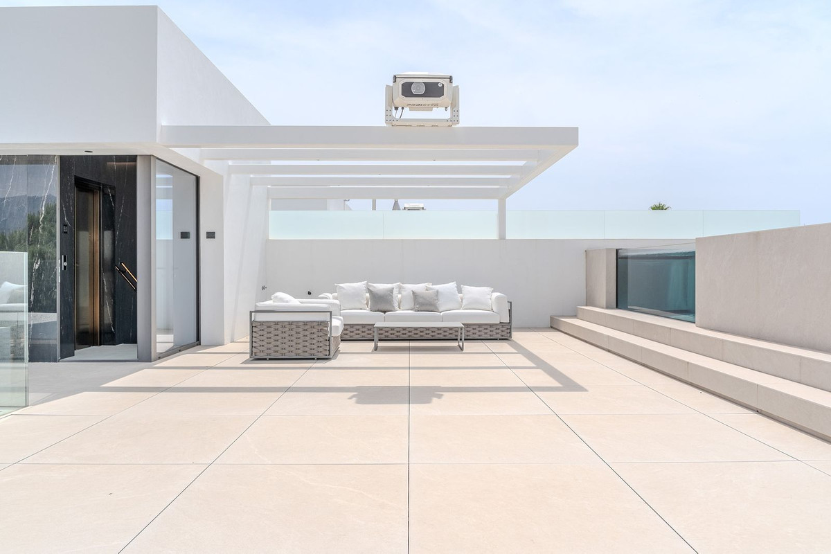 Exclusive Villa in Puerto Banús, Marbella Now available in the prestigious Vilas 6 gated complex: Villa 2, unfurnished Villa 6, fully furnished corner unit Live in absolute luxury in this spectacular villa located in one of Puerto Banús' most prestigious gated communities, comprising only six residences. This property offers the perfect blend of privacy, design, and comfort, redefining modern Mediterranean living. Each villa features 4 bedrooms, 5 bathrooms, and an open-plan living and dining area with a fully equipped kitchen fitted with top-of-the-line Gaggenau appliances. Enjoy a private rooftop solarium with pool-jacuzzi and panoramic views, as well as access to a shared community pool used by only six homes. Both properties include 4 private underground parking spaces with direct access to the home. Ideally located just minutes from the beach, marina, designer boutiques, and Marbella's finest restaurants.