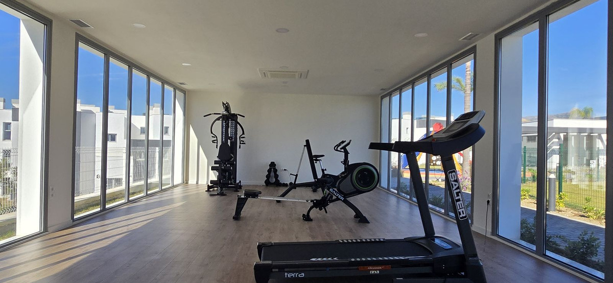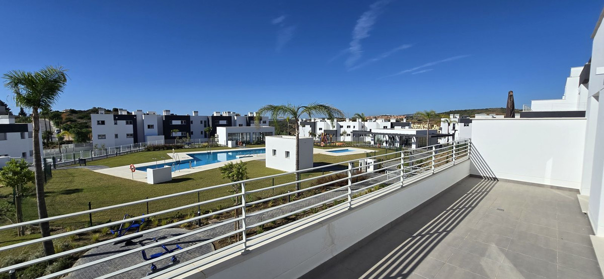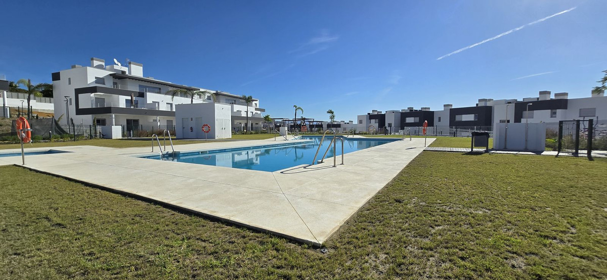 An ideal setting... 2 bedroom, 2 bathroom open plan apartment on the fist floor of recently completed new development. Habitat Valle Romano is perched on a gentle hilltop overlooking the bay of Estepona. Nestled in a natural space surrounded by a golf course, just minutes away from the beach, the Estepona town centre and all types of services. This comprehensive resort boasts common areas that include extensive green spaces, a dedicated telecommuting and co-working zone, two swimming pools, a social club, running tracks, a gym, relaxation area, children's play areas, and pétanque courts, all set in a peaceful environment surrounded by nature, distancing itself from urban congestion and promising a healthy lifestyle. The development superbly connected via the Autovía del Mediterráneo motorway, taking you to Marbella in 25 minutes and Malaga Airport in just 50 minutes. Its prime location nestled between the sea and the Los Reales de Sierra Bermeja Natural Reserve enables you to indulge in two distinct natural landscapes within very close proximity. It also features a 20 km coastline stretching between Puerto Banús and Sotogrande, home to two of the region's foremost marinas. Hospital of Estepona is 5 minutes drive. The International school of Estepona , Estepona Football centre and Mercadona are 8 minutes drive.