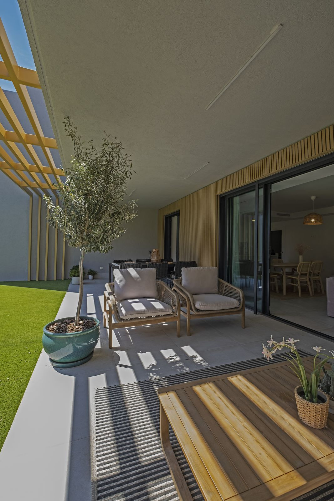 Setting: Frontline Golf, Beachside, Close To Golf, Close To Shops, Close To Sea, Close To Town, Close To Schools, Close To Forest, Urbanisation Orientation: East, South East Condition: Excellent, New Construction Pool: Communal, Children`s Pool Climate Control: Air Conditioning, Hot A/C, Cold A/C, Central Heating Views: Country, Pool, Courtyard, Forest, Street Features: Covered Terrace, Fitted Wardrobes, Near Transport, Private Terrace, WiFi, Gym, Sauna, Paddle Tennis, Tennis Court, Storage Room, Utility Room, Ensuite Bathroom, Double Glazing, Domotics, Restaurant On Site, Fiber Optic Furniture: Optional Kitchen: Fully Fitted Garden: Communal, Private, Easy Maintenance Security: Gated Complex, Electric Blinds, Alarm System Parking: Open, Street, Communal, Private, EV charge point Utilities: Electricity Category: Bargain, Golf, Holiday Homes, Investment, Luxury, Resale, Contemporary