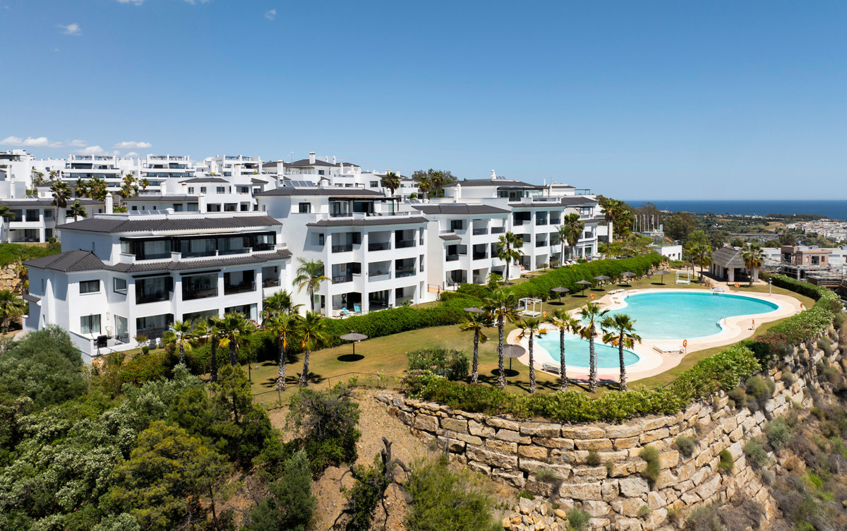 Welcome to this brand-new, never-lived-in apartment in Mirador de Estepona Hills, one of the most prestigious residential communities in the area of Estepona. Thoughtfully designed for comfort and modern living, this spacious home offers 3 bedrooms and 2.5 bathrooms, including a master suite with en-suite bathroom. The open-plan living and dining area is filled with natural light, flowing seamlessly onto a southwest-facing terrace with sweeping views across Estepona town and the Mediterranean Sea. The apartment is sold fully furnished with elegant, quality pieces that complement the modern aesthetic. A private parking space and storage room are also included, ensuring convenience and practicality. Perfect for someone who would like to purchase this property for short or long term rental investment! Life in Mirador de Estepona Hills is about enjoying a resort-style lifestyle every day. Residents benefit from 24-hour security and concierge service in a gated environment, surrounded by tropical gardens. Amenities include multiple swimming pools, a gym and sauna, padel courts, and an on-site restaurant and bar — all designed to enhance well-being and leisure. With its elevated position, this property offers panoramic views while being just minutes away from Estepona’s charming old town, golden beaches, shopping areas, and a wide range of dining options. For those seeking a brand-new home that combines modern comfort with a resort atmosphere, this apartment represents a rare opportunity in one of Estepona’s most desirable developments.