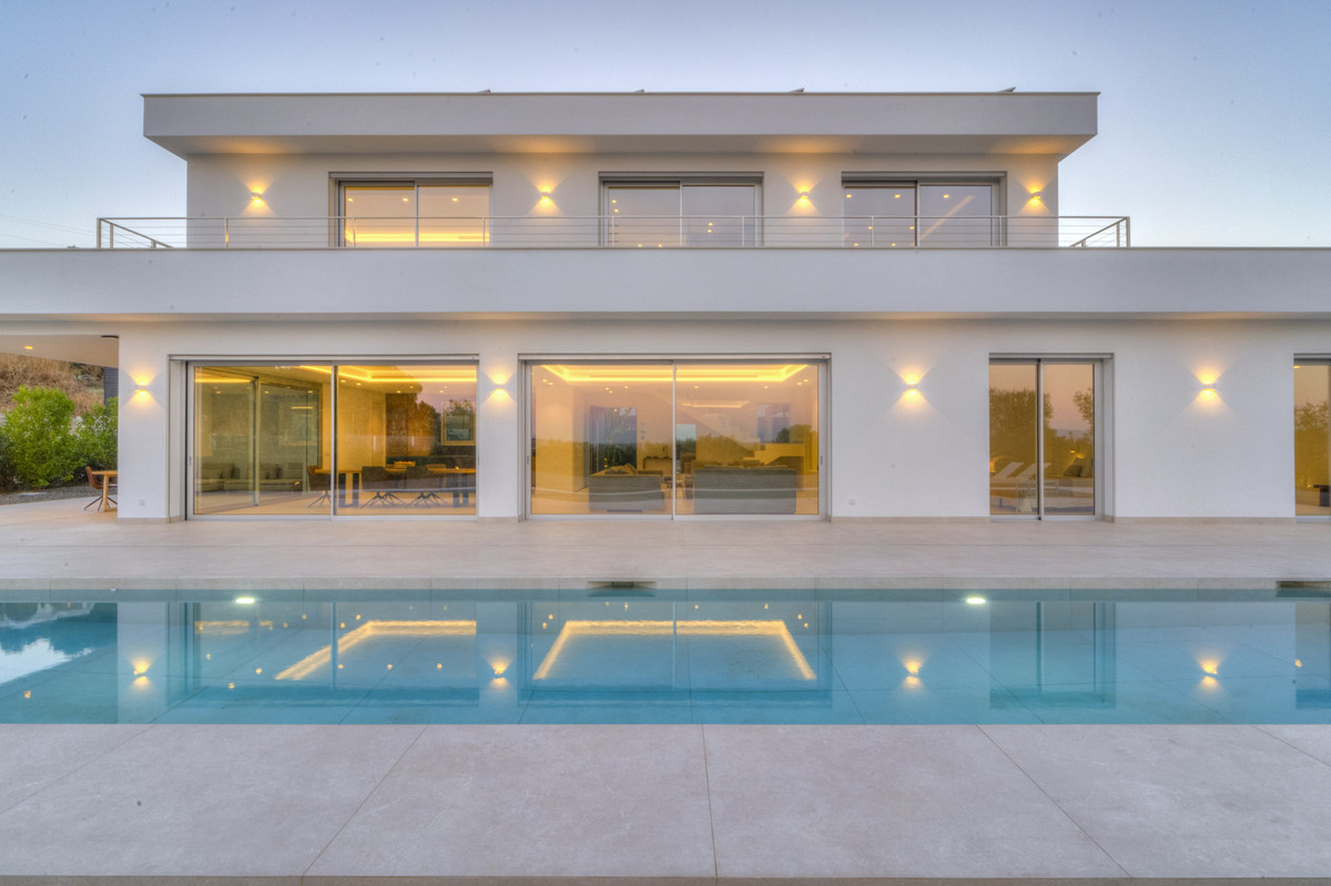 | Setting: Close To Shops, Close To Town Orientation: East Condition: Excellent, New Construction Pool: Private Climate Control: Air Conditioning, U/F Heating, U/F/H Bathrooms Views: Mountain, Country, Panoramic, Garden, Pool, Street Features: Covered Terrace, Private Terrace, Ensuite Bathroom, Double Glazing, Domotics, Fiber Optic Furniture: Fully Furnished Kitchen: Kitchen-Lounge Garden: Private Security: Electric Blinds, Entry Phone, Alarm System Parking: Covered, More Than One Utilities: Solar water heating |