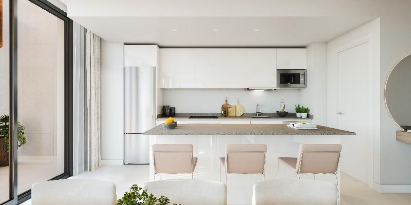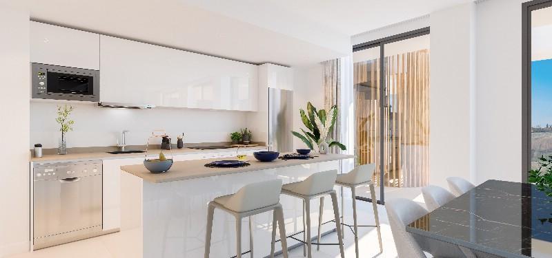 Setting: Close To Golf, Close To Shops, Close To Schools Pool: Communal Climate Control: Hot A/C Views: Sea, Mountain, Panoramic, Pool Features: Gym, Ensuite Bathroom Kitchen: Fully Fitted Garden: Communal Parking: More Than One Category: New Development