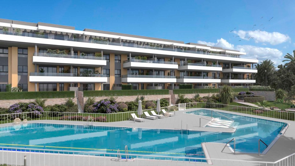 | Setting: Close To Golf, Close To Shops, Close To Town Pool: Communal Climate Control: Air Conditioning, Hot A/C Views: Garden, Pool, Urban Features: Ensuite Bathroom Kitchen: Fully Fitted Garden: Communal Security: Electric Blinds Parking: Communal Category: New Development |