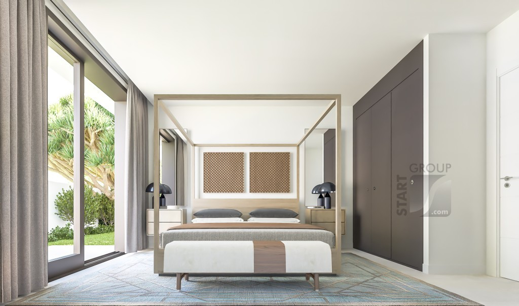 Spanish Living Group are proud to present this boutique development of 10 modern design villas, set in the privileged area of El Chaparral in Mijas Costa. El Chaparral is an exclusive urbanization of luxury villas situated in between Fuengirola and Marbella and only 20 minutes drive from Malaga airport. The excellent El Chaparral golf course is located only a few hundred meters from the villas. This 18-hole golf course is surrounded by an impressive natural pine forest. This is one of the few places in the world where you find this special variety of pine trees which forms a spectacular scenery with the golf course nestled in between and with views of the sea and the mountains. The picturesque village of La Cala de Mijas is only minutes away by car or a mere 20 minute walk along the beach. In La Cala de Mijas you can find an abundance of nice restaurants, shops, supermarkets and some great wine bars. This area has become increasingly popular in recent years thanks to the fact that the original village has maintained its Andalusian charm while new modern apartments, townhouses and villas have been built in the newer area behind the village, yet less than a kilometer from the beach. The villas all benefit from large open spaces. When entering the property, you find yourself in a grand hall with double height ceilings, leading into a bright and spacious living-room with a fireplace and vaulted ceiling. Adjacent to the living-room, you enter a separate dining area that opens to an amazing state-of-the-art kitchen featuring an impressive cooking island. The ground floor enjoys direct access to a lush Mediterranean garden with a large private swimming pool. The main outdoor terrace is partly open and partly covered with a lovely designed pergola, so you can choose between sun or shade. On the ground floor we can also find a large bedroom with en-suite bathroom as well as a separate guest bathroom and a big utility room. You reach the top floor via a beautifully designed staircase which is an iconic architectural feature in itself. The master suite accommodates a spacious bedroom with views and a private south facing terrace as well as walk-in wardrobe and, of course, a luxury en-suite bathroom. On the top level of the villa there are two more bedrooms with built-in wardrobes and a bathroom. Each property has a private gated entrance leading up to a large covered carport with space for two cars. The properties are fenced off for privacy as well as security. The exterior retaining walls are built with "Casares stones" which are huge decorative boulders that give the properties an aspect of utmost luxury - even from the outside. The buyer has the possibility to buy the villa with an optional basement. This area can include a garage for two to three cars, a guest bedroom, bathroom, storage area as well as a room that could be made into a gym, games room or even a home cinema! Villas with 4 bedrooms, 3 bathrooms, from 1420.000 euros (excl. 10% VAT)
