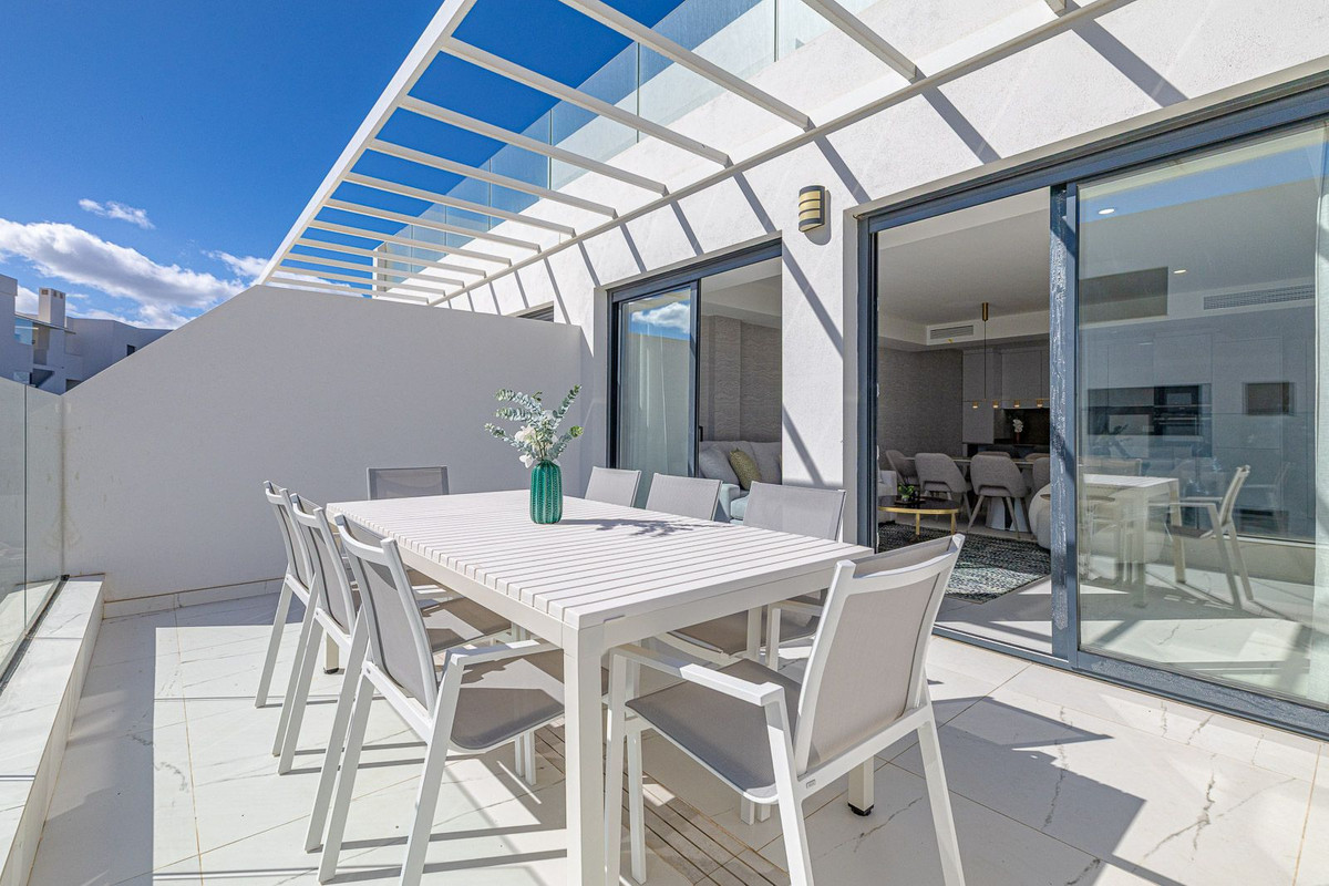 For sale: a stunning brand-new apartment, never lived in, offering a privileged location with beautiful sea views. This is a modern, bright home equipped with everything you need to enjoy maximum comfort from day one. It features 2 spacious bedrooms with large walk-in wardrobes and 2 full en-suite bathrooms. The kitchen, spacious and fully equipped, opens onto a beautiful, bright living-dining area, creating an open and welcoming space. From the living room, there is direct access to a large private terrace with sea views — perfect for relaxing, dining outdoors, or simply enjoying the wonderful Mediterranean climate. The apartment is sold fully furnished with brand-new furniture, and also includes a private parking space and storage room in the same building. The gated community offers a swimming pool with sea views, as well as a gym and social area for residents. Located in a quiet area, close to all amenities, shops, and just steps from the beach. Perfect both as a permanent residence or a holiday investment.
