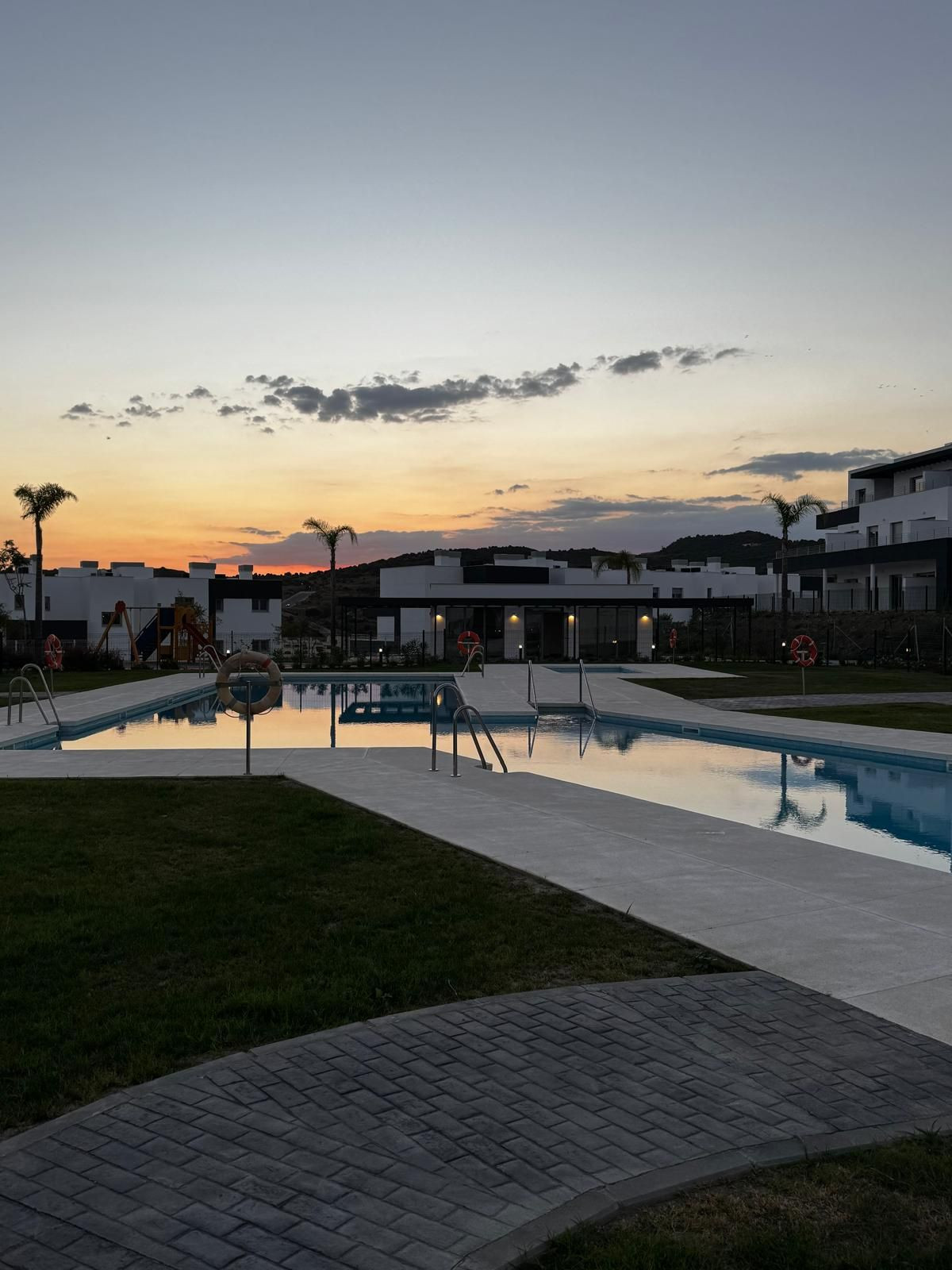 Elegant Ground-Floor Corner Apartment with Covered Terrace & Golf Views – Valle Romano, Estepona (Block 7) with 2 parking places This beautifully presented 2-bedroom, 2-bathroom corner apartment is located in Block 7 of the prestigious Valle Romano residential complex in Estepona. Set on the ground floor, it enjoys a peaceful ambiance, abundant natural light, and a spacious covered terrace that seamlessly extends the living space toward the serene green landscape and golf views. Key Property Features Private corner position – with no neighbors on one side, offering enhanced privacy and open views across the manicured gardens and Valle Romano golf course. Spacious covered terrace – a shaded retreat perfect for year-round relaxation, al fresco dining, or quiet mornings surrounded by nature. Functional layout – two bedrooms (including a master suite with its own bathroom), a second full bathroom, and a bright open-plan living area connected to the terrace through large glass doors. Calm and cozy interiors – neutral tones, modern finishes, and smart use of space create a welcoming home environment for both permanent living and holidays. ☀️ Comforts & Community Amenities 2 Private underground parking spaces and dedicated storage room, Outdoor swimming pool and separate children’s pool, Playground and landscaped walking areas, Community clubhouse with lounge and kitchen, Indoor gym and outdoor fitness area, Picnic zones and pétanque court, Secure, well-lit common areas providing a peaceful and safe atmosphere throughout the complex. Why This Property Stands Out This charming ground-floor corner apartment combines comfort, privacy, and convenience in one of Estepona’s most desirable residential settings. Perfect for: Couples or small families seeking easy access and outdoor living, Golf and nature lovers looking for a tranquil home near top courses, Investors aiming for a high-demand rental property with year-round appeal.