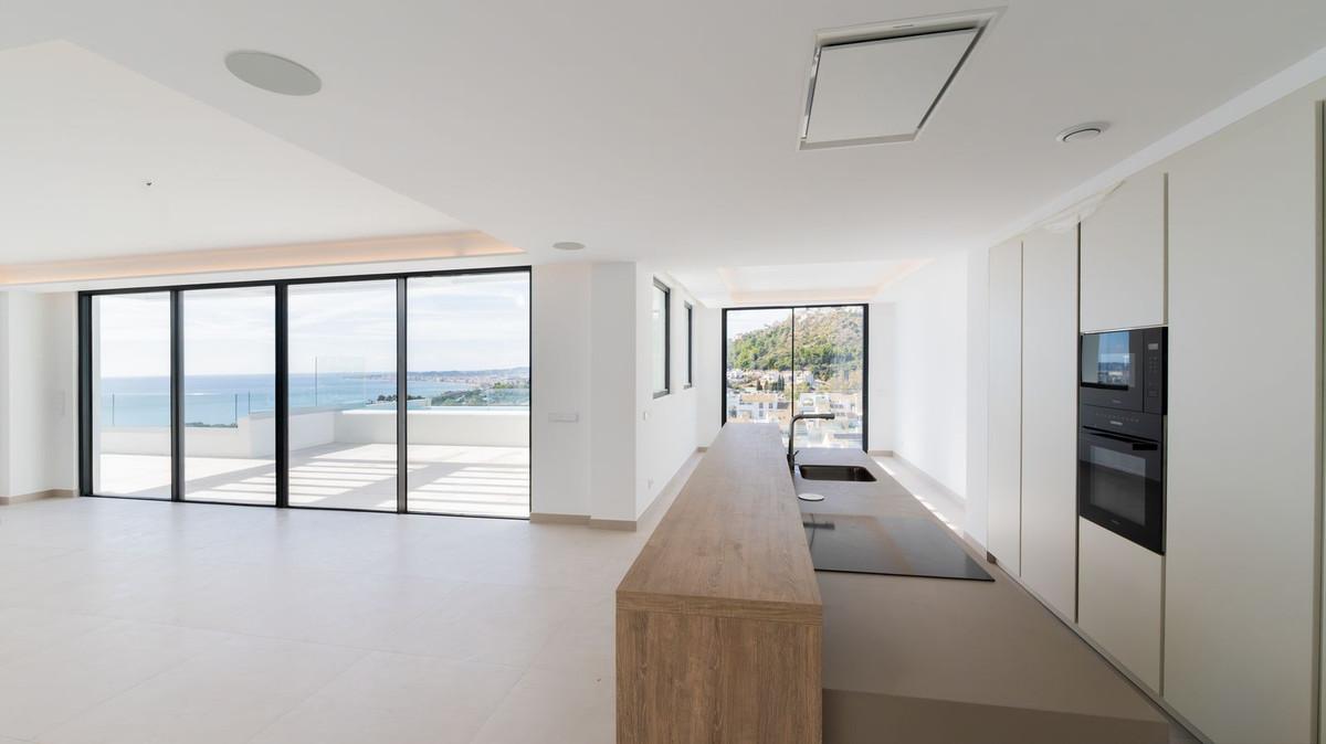 Setting: Close To Golf, Close To Port, Close To Shops, Close To Sea, Close To Town, Close To Schools, Close To Marina, Urbanisation Orientation: South West Condition: Excellent, New Construction Pool: Private Climate Control: Air Conditioning Views: Sea, Mountain, Country, Panoramic, Pool Features: Covered Terrace, Lift, Fitted Wardrobes, Private Terrace, Storage Room, Utility Room, Ensuite Bathroom, Double Glazing, Domotics Furniture: Not Furnished Kitchen: Fully Fitted Garden: Communal Security: Gated Complex, Electric Blinds, Entry Phone Parking: Garage, Private Category: Luxury, Resale