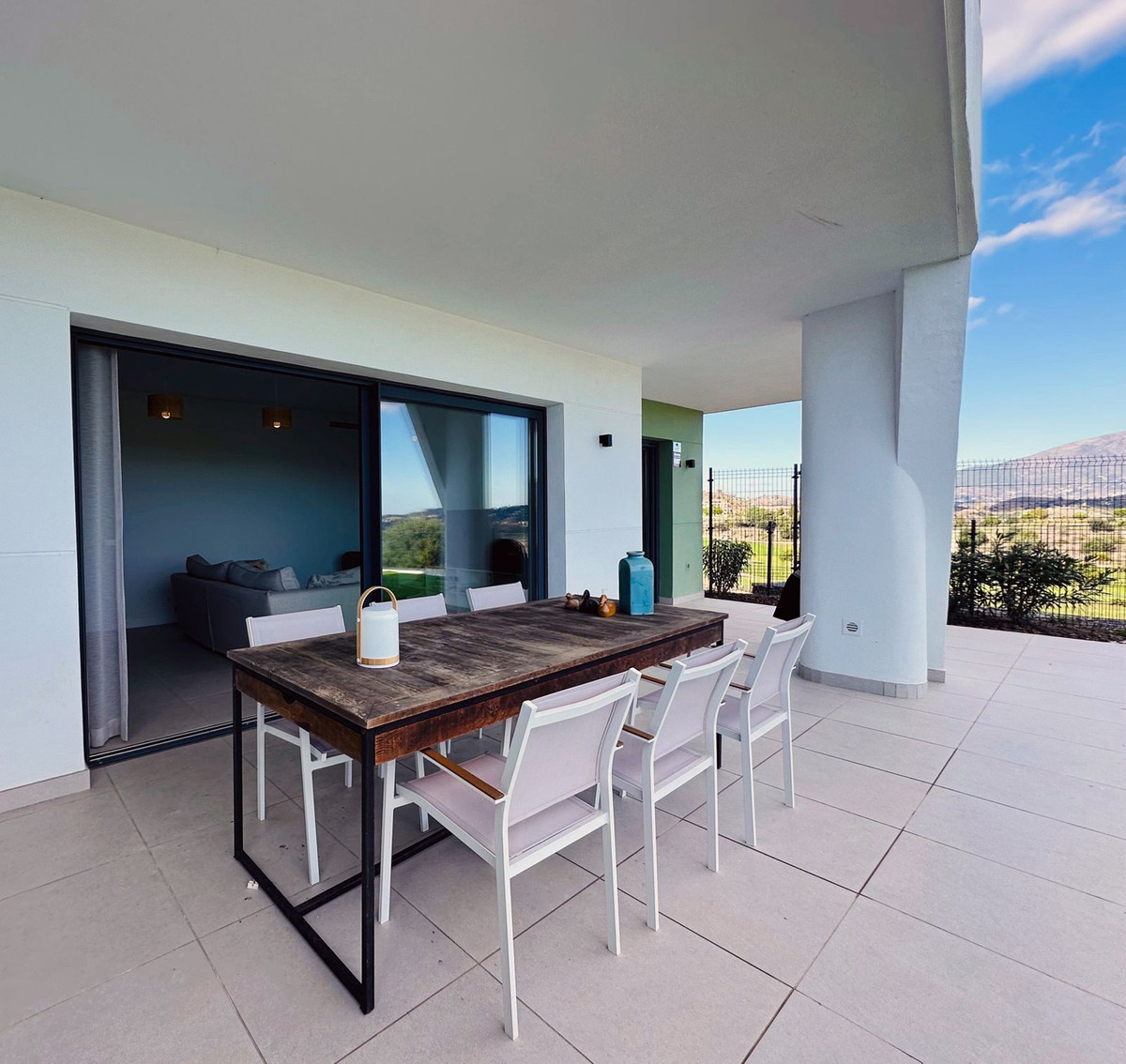 Luxury 3-bedroom ground floor apartment with sea and golf views, Calanova Golf – Mijas Discover the ultimate in living comfort in this stylishly furnished 3-bedroom, 2-bathroom apartment, located in the prestigious Ipanema complex at Calanova Golf in Mijas. This modern property offers a perfect blend of tranquillity, elegance and impressive views over the Mediterranean Sea and the lush golf courses. The spacious, open-plan living and dining room seamlessly connects to a generous 41m² terrace – ideal for dining or relaxing with panoramic views. The 136m² garden offers both shade and sun throughout the day. The kitchen is modern, fully equipped with high-quality built-in appliances and finished with an eye for detail. The master bedroom has an en-suite bathroom and direct access to the terrace with sea views. Two additional bedrooms and a second bathroom make this flat suitable for families or as a valuable investment property. Highlights of this property: - Sunny location with lots of natural light - Large private terrace and adjoining garden with spectacular sea and golf views - Air conditioning (hot and cold) - Access to two designer swimming pools, gym and beautifully landscaped gardens - Secure and gated residential complex with high security standards + private parking spaces Located just minutes from the beach, La Cala de Mijas and various amenities, this penthouse offers an exceptional lifestyle in one of the most sought-after and promising areas of the Costa del Sol.
