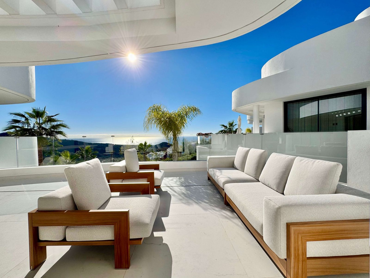 Setting: Urbanisation Orientation: South East, South Condition: Excellent, New Construction Pool: Communal, Indoor, Heated Climate Control: Air Conditioning, U/F/H Bathrooms Views: Sea, Panoramic Features: Covered Terrace, Lift, Fitted Wardrobes, Private Terrace, Ensuite Bathroom, Double Glazing Furniture: Optional Kitchen: Fully Fitted Garden: Communal Security: Gated Complex, Electric Blinds, Entry Phone, 24 Hour Security Parking: Underground, Covered, More Than One, Communal Category: Luxury
