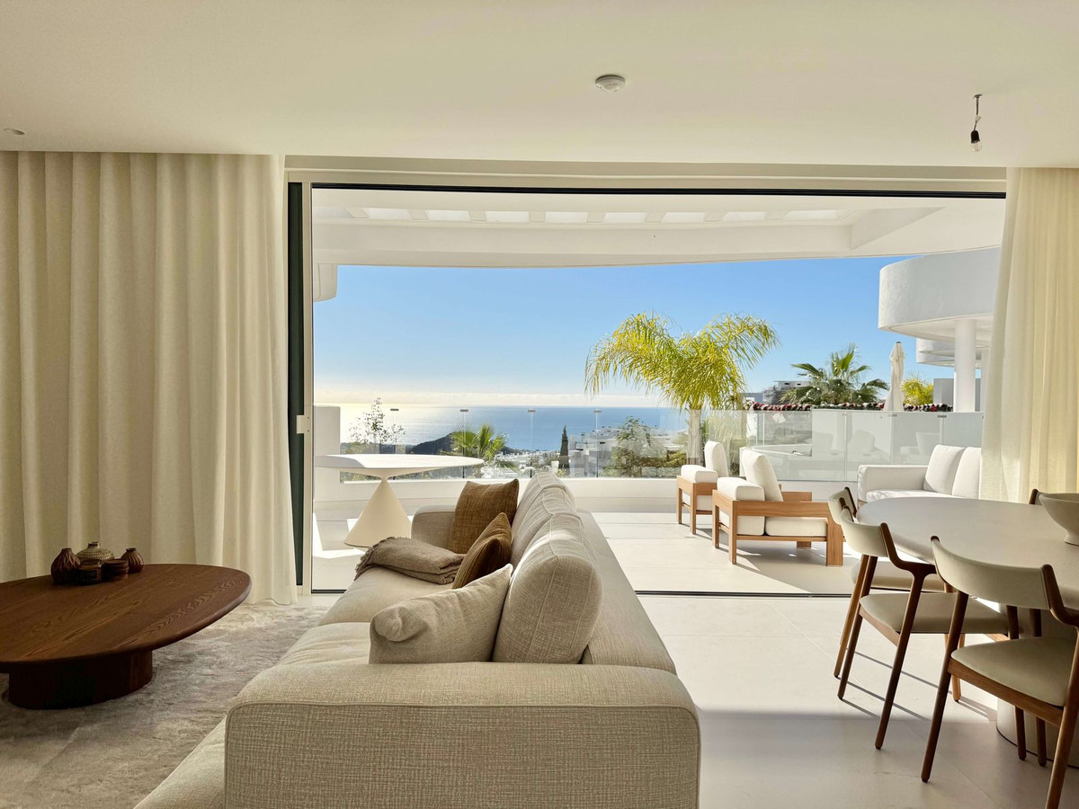 Highlights *Breathtaking views of the sea and surrounding nature *Access to exclusive club facilities with wellness, fitness and social club *Move-in ready with high-quality furnishings *Two parking spaces and a storage room About the Project The apartment is located in Granados, one of the most prestigious residences within the luxurious Palo Alto estate, nestled against the green hills of Ojén, just above Marbella. Here, you live in complete tranquility, surrounded by nature and overlooking panoramic views of the Mediterranean Sea. This move-in-ready apartment is ideal for anyone seeking comfort, design, and a carefree lifestyle under the Costa del Sol sun. Facilities & Amenities *Residents of Granados enjoy exclusive access to Palo Alto’s fully equipped Clubhouse – a luxurious meeting point where well-being and community come together. Here you will find: *A modern gym with natural light *Wellness center with indoor pool, sauna and spa *Co-working space and cozy social club *Tennis court and lush gardens *Permanent concierge service and security These amenities not only create comfort, but also a sense of connection with like-minded residents – perfect for bon vivants and entrepreneurs who value both relaxation and productivity. Interiors & Finishes This spacious apartment with three bedrooms and two bathrooms is tastefully decorated in a warm, contemporary style. Large windows let natural light flow through the living areas and create a seamless connection with the large terrace offering sea views. The open-plan kitchen features top-of-the-line appliances and premium materials. The bedrooms are stylish and serene, with built-in wardrobes. The bathrooms combine elegance and functionality, with clean lines and high-quality finishes. The apartment includes two underground parking spaces and a generous storage room, making it highly practical for both residential living and investment purposes. Location Granados sits in the upper part of Palo Alto, a secure gated estate just 10 minutes from Marbella’s town center and the beach. Thanks to its elevated position, you’ll enjoy peace, privacy, and spectacular views, while still being close to all Costa del Sol hotspots. 6 min. from Marbella center 3 min. from La Cañada Shopping 10 min. from the beach 15 min. from Puerto Banús 40 min. from Málaga Airport Direct access to hiking trails in the Sierra de las Nieves Summery 3 bedrooms | 2.5 bathrooms Spacious living area with open kitchen Large terrace with stunning sea views Guest toilet and separate utility/storage room inside the apartment Includes 2 underground parking spaces and storage room Move-in ready and fully finished, built in 2024