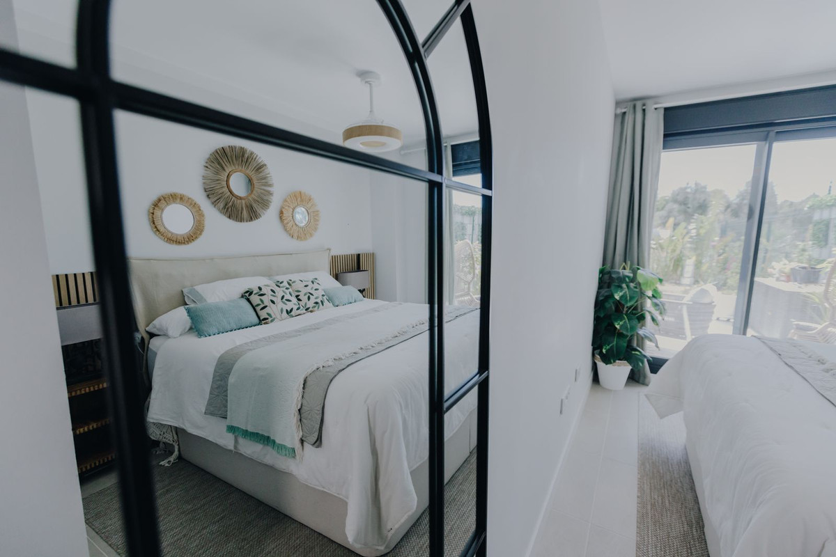 Modern ground-floor 2-bedroom apartment with amazing garden located in the exclusive Aranya development in Selwo, Estepona. The property is newly delivered, south-facing and sold fully furnished, offering bright interiors and a contemporary design. The open-plan living area connects directly to a spacious private terrace and a large garden, creating the perfect setting for outdoor dining, relaxation and entertaining. The apartment includes an underground parking space and a storage room. Aranya is a secure gated community featuring a swimming pool, landscaped gardens, a gym, wellness area and co-working space. The location is excellent: just a 20-minute walk to the beach, 4 minutes by car to Sublim Beach Club, 8 minutes to Estepona town centre and 10 minutes to Marbella, with shops, services and restaurants nearby in the Las Joyas area. An ideal property for permanent living, holiday use or as a high-potential rental investment.