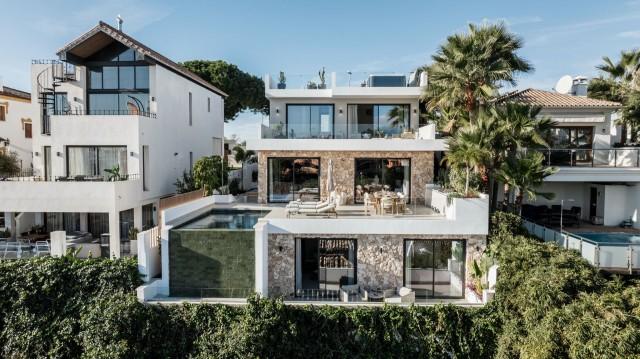 This fully renovated design-led luxury villa is set in one of the most elevated and scenic positions in Nueva Andalucía, offering breathtaking panoramic views that stretch from the iconic La Concha mountain to Gibraltar and the Mediterranean coastline. Positioned on a quite location, the property combines privacy, architectural refinement, and exceptional outlooks across the golf valley. Rebuilt to high specifications, the villa blends contemporary architecture with premium materials and timeless finishes. Its dual east and west orientation ensures abundant natural light throughout the day, enhancing the open and airy interior atmosphere. Distributed across three levels, the residence features five well-proportioned bedrooms and four stylish bathrooms, providing flexibility for families, guests, or investment use. The main living level is designed for seamless modern living, with an open-plan kitchen, lounge and dining area that flows directly onto a generous terrace. This outdoor space is ideal for entertaining, featuring an outdoor kitchen and a large private swimming pool with a swim-jet system, all set against uninterrupted panoramic views. A rooftop terrace elevates the lifestyle offering further, complete with a jacuzzi and 360-degree views. This space is perfectly suited for sunset gatherings, relaxation, or wellness moments while enjoying the surrounding landscape. The lower level includes a fully self-contained apartment with its own entrance, bathroom, lounge, and private terrace. This versatile space is ideal for guests, extended family, or as a potential rental unit, offering excellent income potential while maintaining privacy for the main residence. High-quality finishes are evident throughout, including porcelain flooring, custom wood cabinetry, and natural stone elements. Additional features include a modern alarm system and a private carport. Despite its peaceful and elevated setting, the villa remains exceptionally well connected. Shops, restaurants, beaches, international schools, golf courses, and lifestyle amenities are all within easy reach, while excellent road access provides fast connections to Marbella, Puerto Banús, Estepona, and Málaga Airport. This property represents a rare opportunity to acquire a fully reimagined luxury villa with panoramic views in one of Nueva Andalucía’s most desirable residential locations - ideal as a primary residence, holiday home, or high-performing investment.