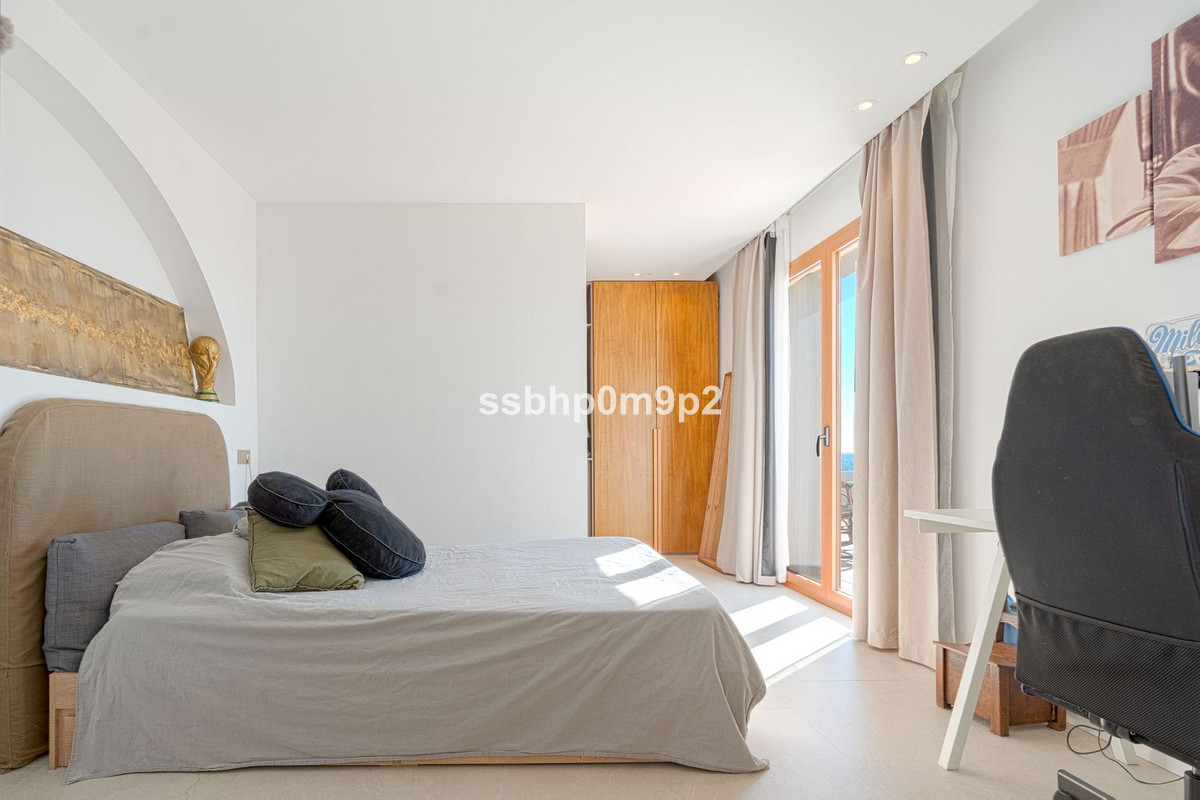 Detached villa located in El Faro de Mijas, offering open views of the Mediterranean Sea and the lighthouse, set within an elevated and peaceful residential area. The property enjoys a quiet environment, free from road noise, with good connectivity and pedestrian access to the beach, a feature rarely found in properties of this kind. The villa is arranged over two levels and stands out for its timeless architecture, generous spaces and a carefully considered connection between interior and exterior. Large windows provide abundant natural light and sea views from several rooms. The main suite features a high-end bathroom with dual facing washbasins, two independent WC areas and a spacious walk-in shower. On the upper floor, there are four additional bedrooms, all bright and spacious, each with its own en-suite bathroom. Externally, the property offers a private sea-facing swimming pool, terraces, a barbecue area, an outdoor guest toilet and an interior guest WC, all designed for comfortable year-round use. The villa is offered ready to move into, including furniture and décor, making it ideal as a main residence or a second home on the Costa del Sol.