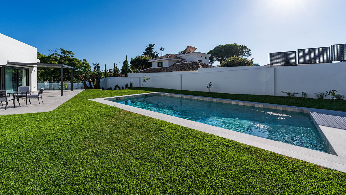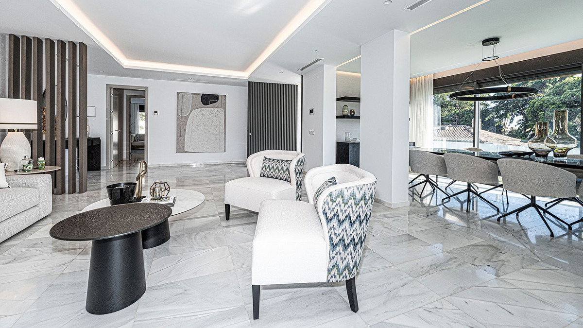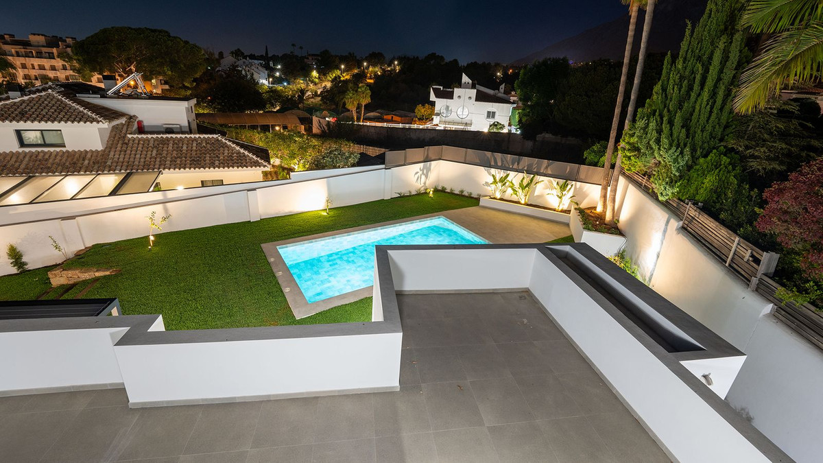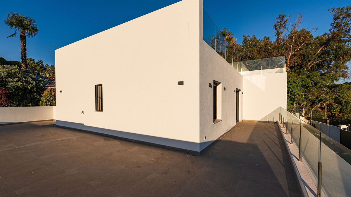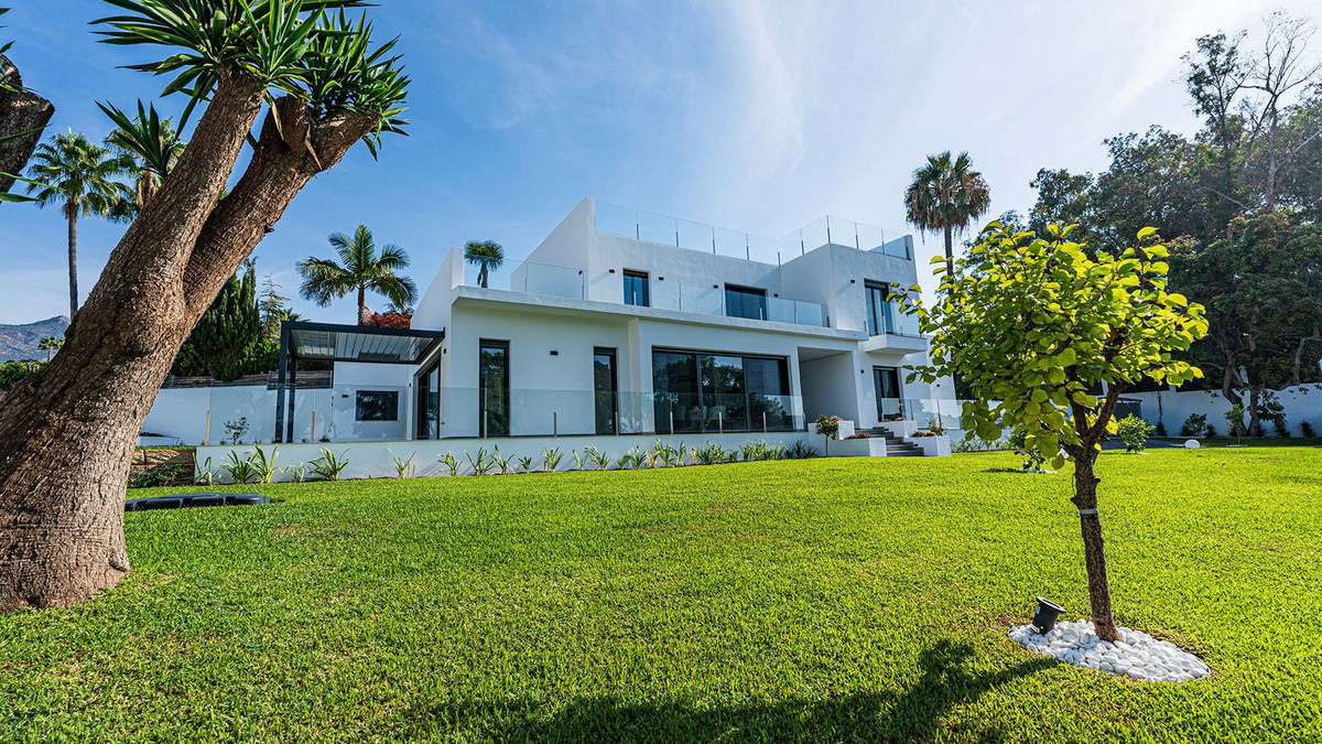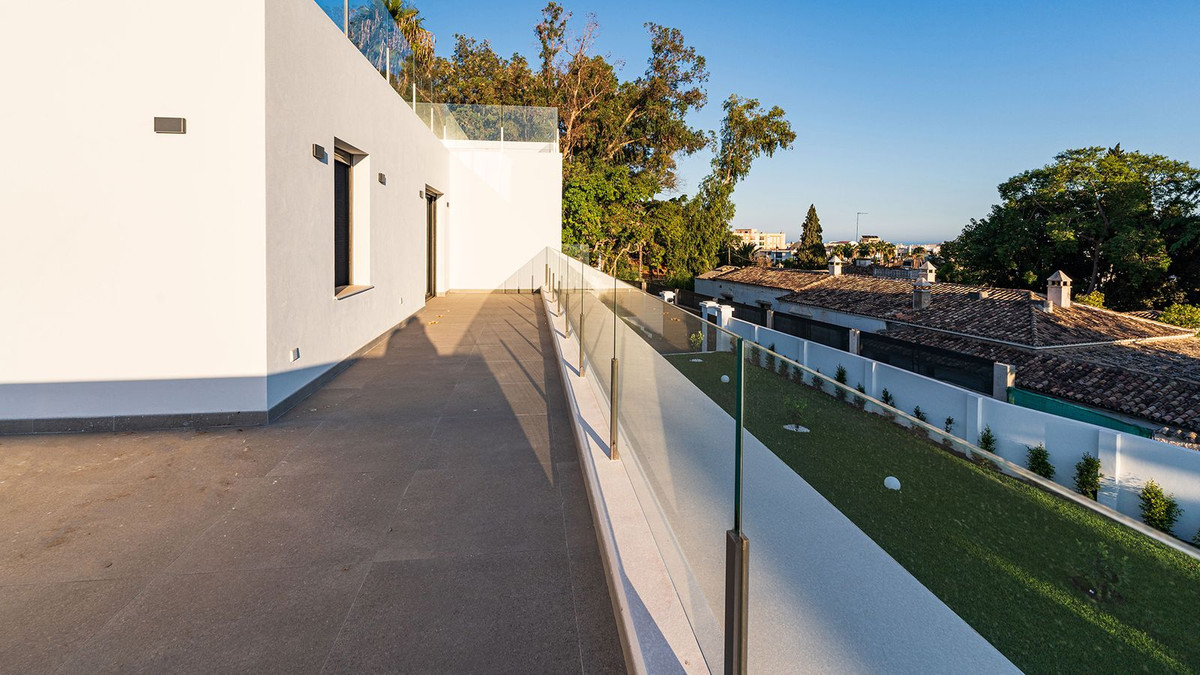 Modern, brand-new luxury villa in the heart of Marbella, located in the exclusive residential area of La Merced. Built in 2024, this unique property combines privacy, elegance, contemporary design, and an unbeatable location, just minutes from the beach and premium amenities. With a 1,485 m² plot and 420 m² of living space, this villa offers spaciousness, natural light, and maximum comfort. Distributed over three floors, the ground floor comprises a grand entrance hall, a magnificent living-dining room with several distinct areas seamlessly integrated with the outdoors thanks to its large windows connecting the spacious terraces, the pool, and the garden, a guest toilet, a fully furnished and equipped kitchen, laundry room, a staff bedroom with en-suite bathroom adjacent to the kitchen, and two spacious bedrooms with two en-suite bathrooms. The first floor features a large master suite with access to a spacious terrace, comprising a large bedroom, dressing area, and bathroom, plus another bedroom with an en-suite bathroom. The third floor features a large solarium terrace with panoramic views of Marbella. Large parking area inside the plot. Key Features: 1,485 m² plot with landscaped garden and private pool 420 m² of living space with contemporary architectural design 5 bedrooms, 5 bathrooms plus guest toilet Solarium with chill-out area and panoramic sea views Modern kitchen with high-end finishes and premium appliances Aerothermal heating and central air conditioning system Spacious terraces and large windows that maximize natural light, top-quality materials and luxury finishes The villa is located in La Merced, one of the most sought-after areas in the center of Marbella, with immediate access to fine dining restaurants, shopping areas, health centers and leisure facilities. A safe, quiet and sophisticated environment, ideal for those seeking privacy without sacrificing proximity to everything Marbella has to offer. An exceptional location in the heart of Marbella's city center, a privileged area close to beaches, international schools and all the services and attractions of Marbella. An ideal property for families seeking an exclusive and spacious home in the heart of Marbella or for investors looking for a high-value property on the Costa del Sol. Clients seeking luxury, comfort, and contemporary style in a premium location. Request more information or schedule a private viewing. This property is a unique opportunity to enjoy the luxurious lifestyle in Marbella.