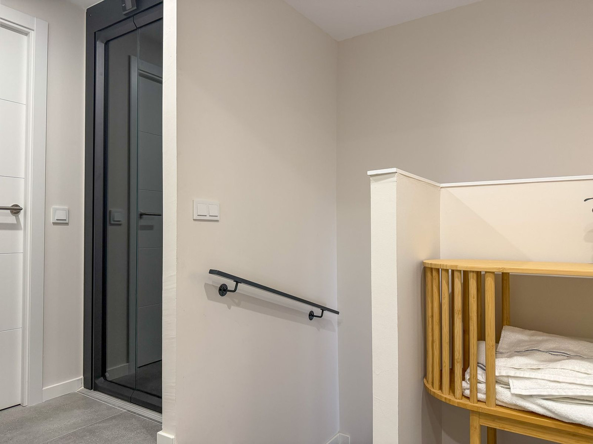 Contemporary Luxury Townhouse in La Cala de Mijas Perfectly located in the charming coastal village of La Cala de Mijas, this elegant townhouse combines modern design, high-quality upgrades, and exceptional convenience. With the beach, restaurants, cafés, and everyday amenities all within walking distance, the property offers a rare opportunity to enjoy refined living in one of the most sought-after locations on the Costa del Sol. The home is distributed over three floors and offers three bedrooms and three bathrooms, with generous outdoor spaces that create a natural extension of the living areas. Direct access from the private parking space provides both privacy and convenience. A private lift connects all three floors of the home, a premium feature rarely found in townhouses, ensuring effortless access throughout the property. The main living area is bright and welcoming, opening onto a spacious west-facing terrace. Large glass doors allow natural light to fill the interior while creating a natural flow between the living room and the outdoor space. The terrace offers ample room for both lounge seating and outdoor dining, making it an ideal setting for relaxed evenings and entertaining. On the upper floor you will find three bedrooms and two bathrooms. The master bedroom includes an ensuite bathroom and access to a private terrace, offering a quiet space to start or end the day. The property has been upgraded with several premium options from the developer, including high-quality tiling and integrated appliances. In addition, the original kitchen has been replaced with a high-end contemporary kitchen that enhances both functionality and design. A bespoke wine bar has also been integrated, creating an elegant feature ideal for entertaining and relaxed evenings at home. A separate laundry room further adds to the practicality of the home, providing additional space for storage and organisation. Residents of the community also benefit from a range of high-quality shared facilities, including a swimming pool, gym, sauna, steam bath, and a stylish residents’ lounge with a pool table, creating additional spaces for relaxation and socialising. Another significant advantage of the property is that it holds an active tourist rental license, offering excellent flexibility for owners who wish to generate rental income while not using the property themselves. Every detail has been carefully considered, resulting in a home that combines modern elegance with everyday comfort. A contemporary home in an excellent location, offering comfort, functionality, and easy access to everything La Cala de Mijas has to offer. Here, you truly don’t have to compromise between convenience, quality, and lifestyle.
